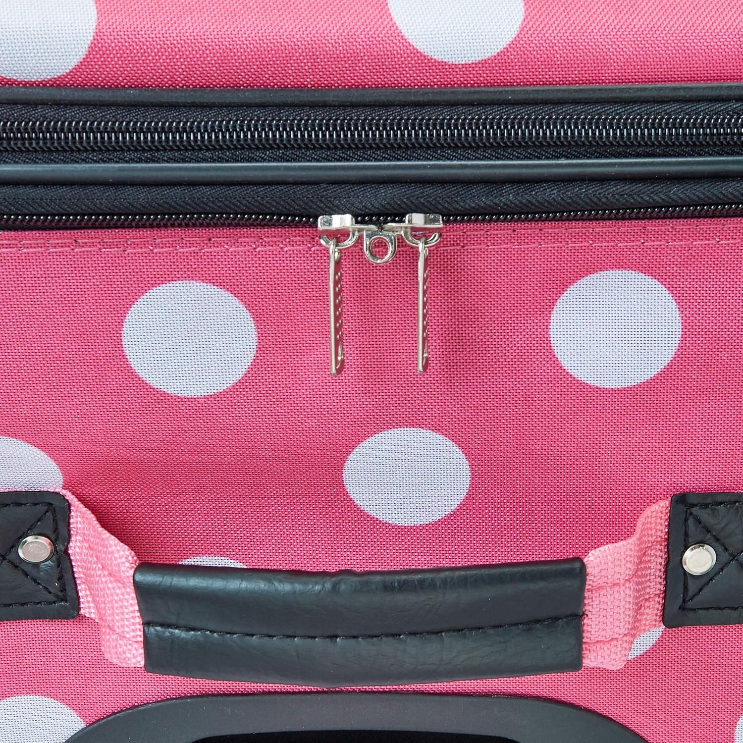 Rockland Vara Softside 3-Piece Upright Luggage Set, Expandable,Lightweight,Telescopic Handle,Wheel, Pink Dots, 20 inches,22 inches,28 inches