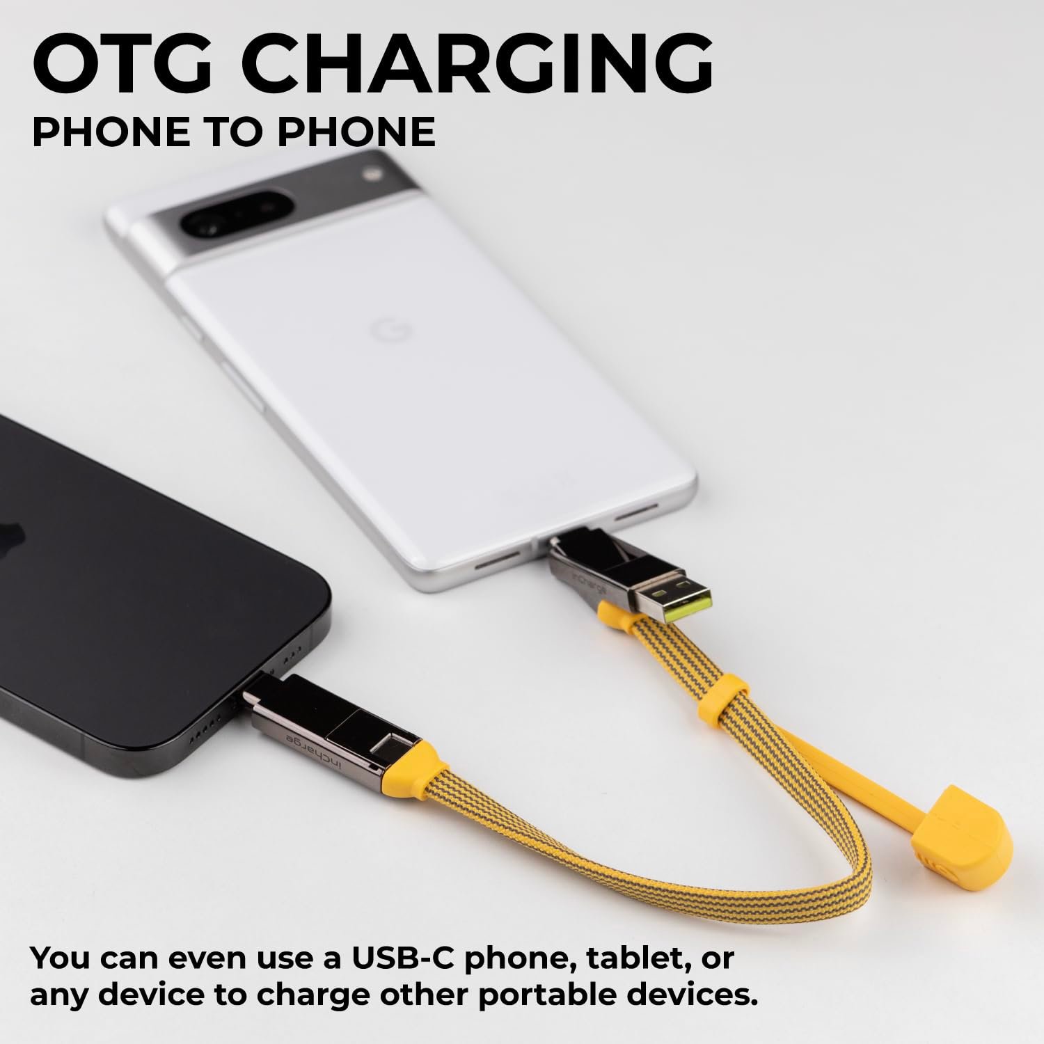 Rolling Square inCharge XL 30 cm – USB-C Cable, Universal Smartphone Cable, Gift for Men, 6-in-1 Universal Charger for Smartphones, Technical Gadget, Yellow, Lightning Cable 100W