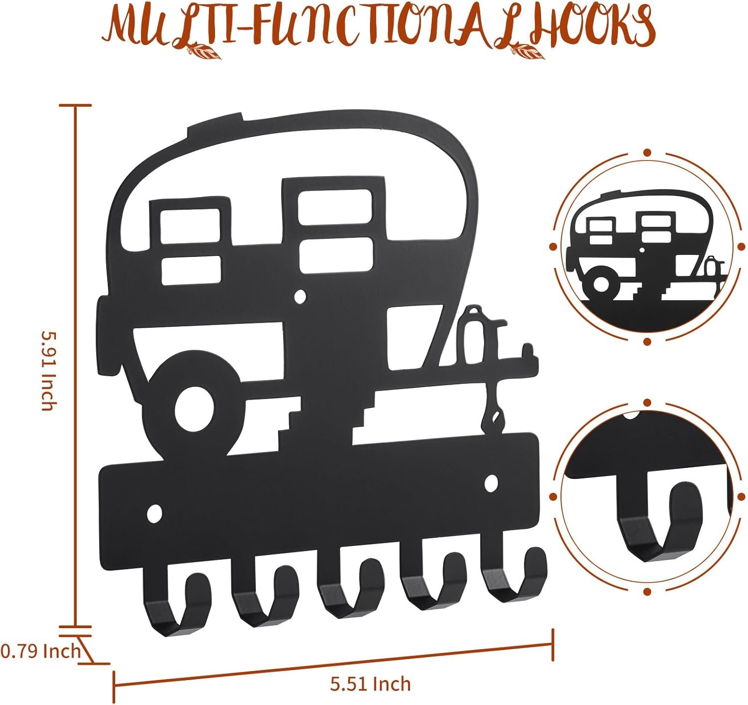 Multi-functional Hooks: 6 inch wide key holder with 5 small hooks, 3/4″ deep and an inch apart. This key rack holder is for important keys, dog leashes, and more, keeping your camper organized in perfect order, but it also resonates with the spirit of seeking diverse experiences,relaxs you in various environments.