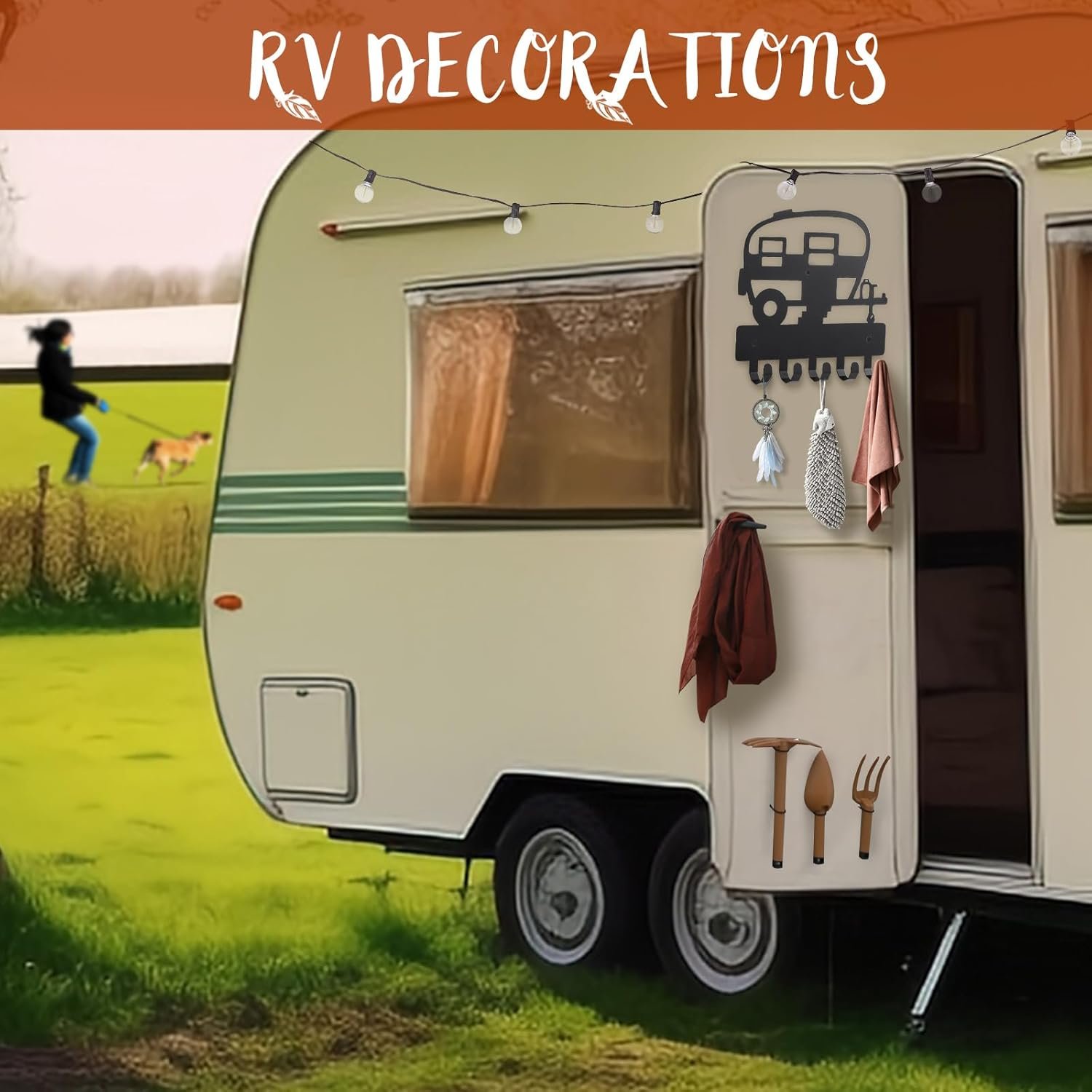 RV-Themed Design: Draws from Motorhome,integrating cute travel trailer into the key rack to evoke a sense of freedom and romance. Made from black carbon steel structure, the sturdy metal withstand daily wear, providing strong support for keys and pet leashes in RVs, doorways, and more.