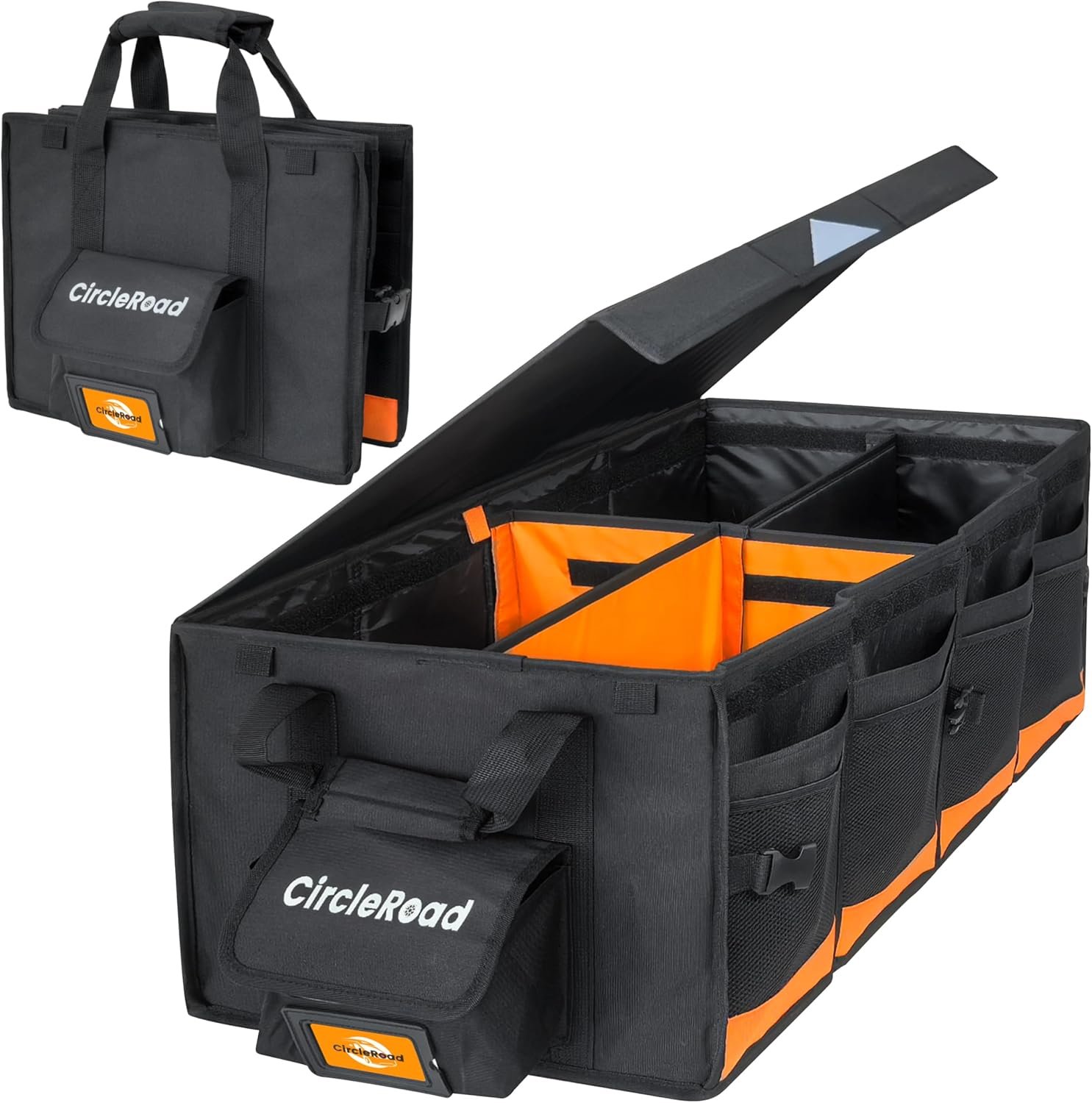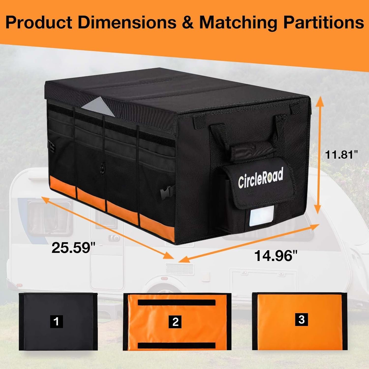Adequate Space: CircleRoad trunk storage organizer have a capacity of 74L, enough to neatly place all kinds of accessories on your RV. The SUV organizer has double layered bags at the front and back, with one layer of cloth bag and one layer of mesh bag, allowing you to place small items inside for easy access.