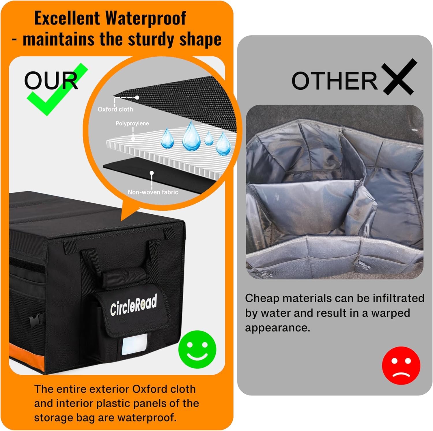 High-quality Material: Our CircleRoad car organizer is made from reliable waterpoof 900D Oxford cloth, which is scratch-resistant. Thickened PP board can keep the RV storage organizer from deforming in humid or hot environments. Make your RV travel more convenient!