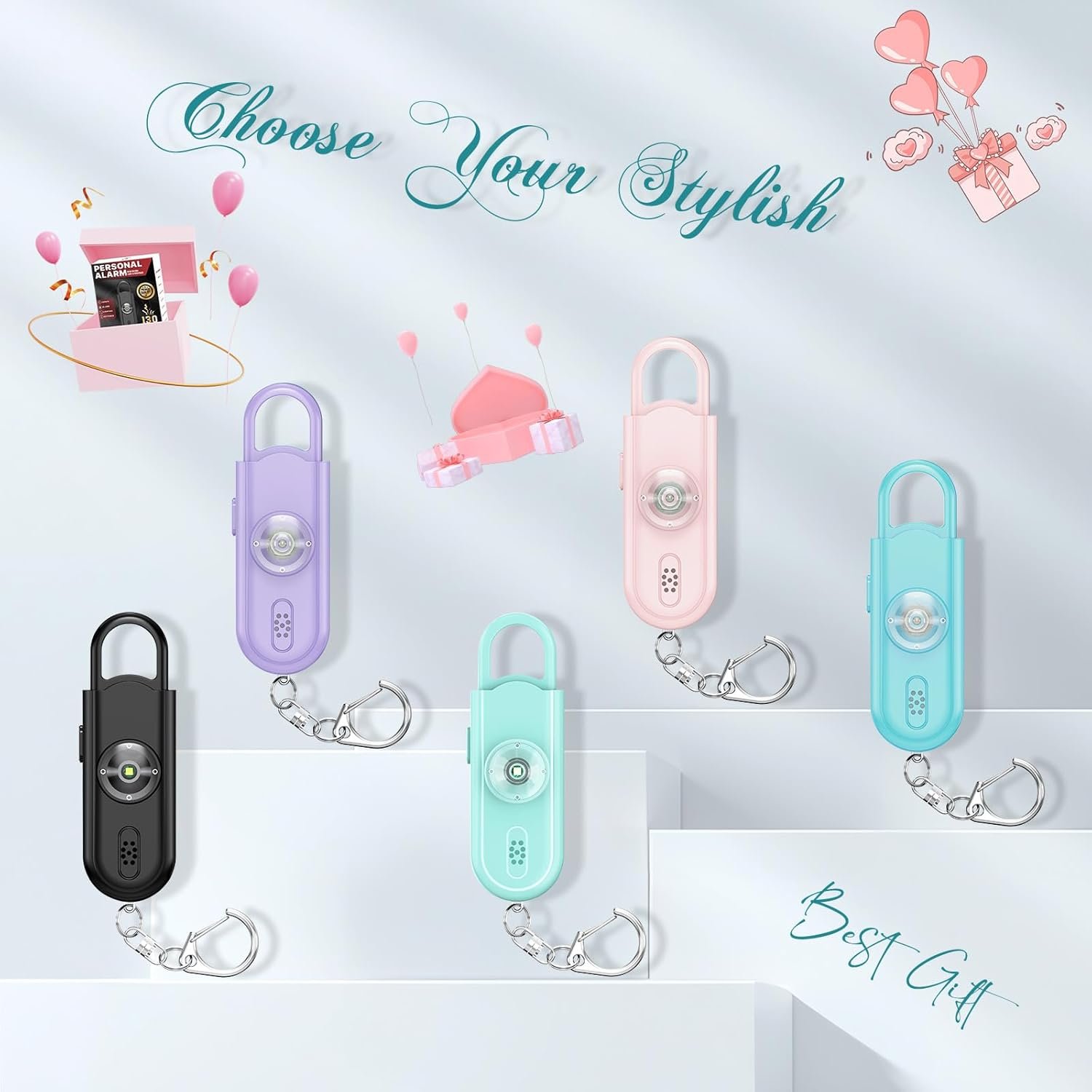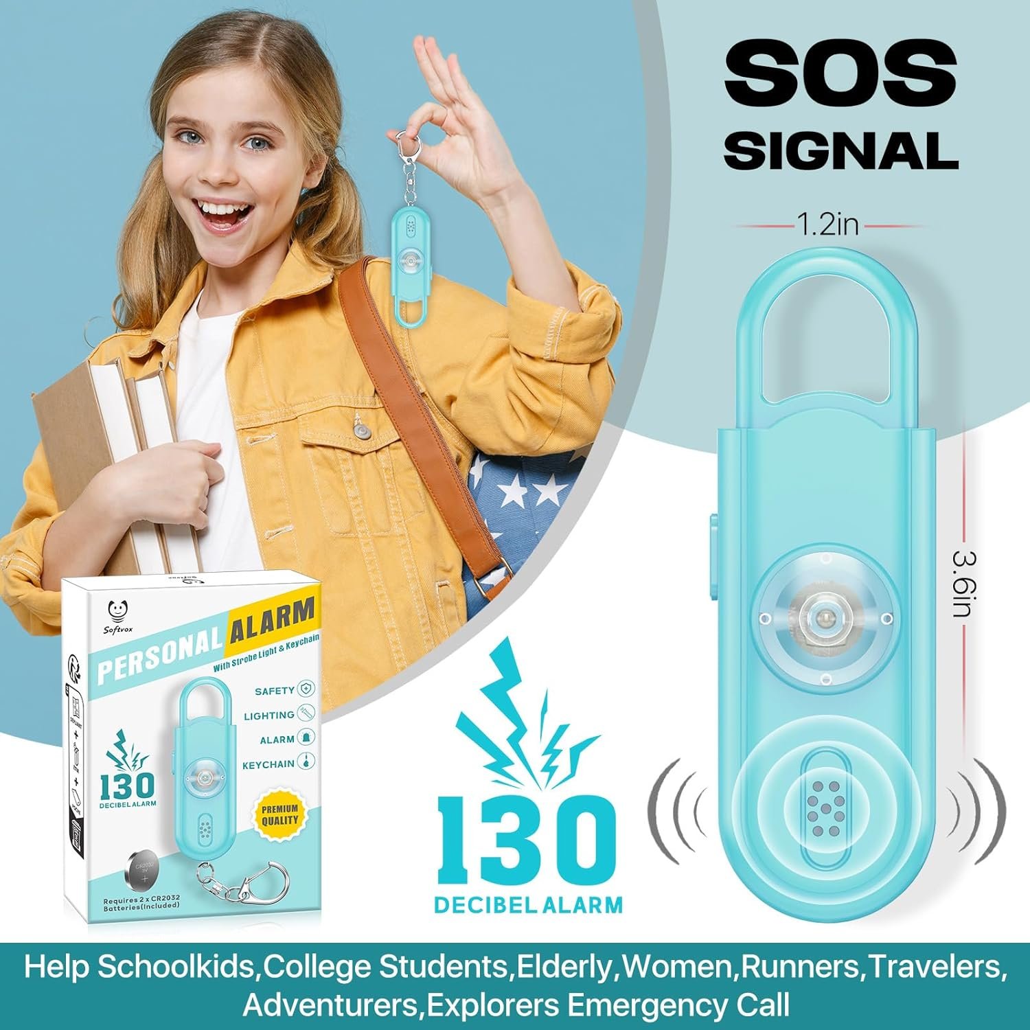 Safe Sound Personal Safety Alarm for Women – Loudest 130dB Siren with Strobe SOS LED Light Safety Keychain, Personal Sound Safety Siren for Women, Men, Children, Elderly,Ice Blue