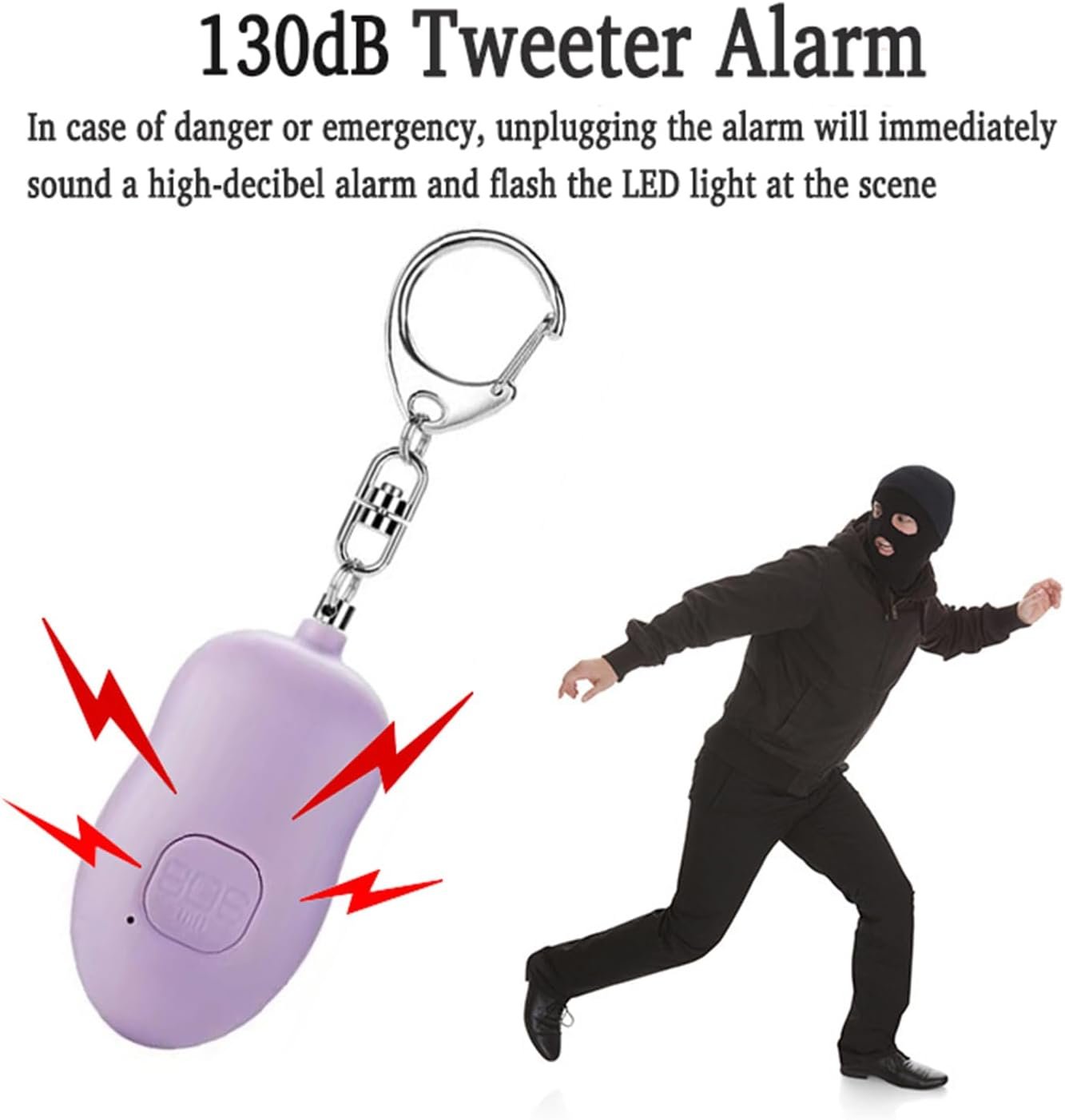 Safety Alarm, Rechargeable Safe Sound Personal Alarm, 130dB Self Defense Keychain with LED Light, Women Personal Alarm SOS Safety Alert Device Key Chain to Carry (Purple)
