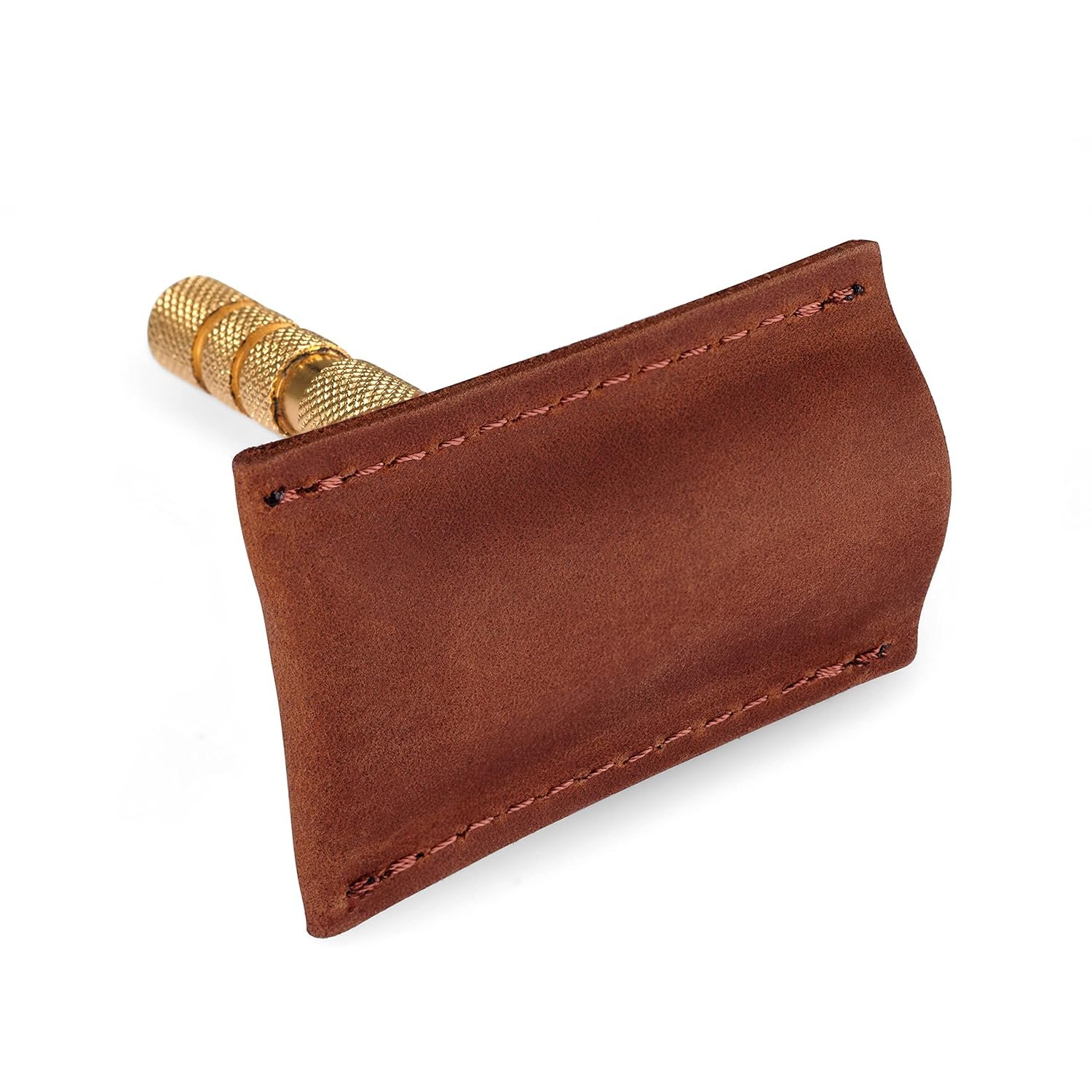 Safety Razor Head Protecting Leather Cover, Genuine Cowhide Leather Double Edge Safety Razor Case Accessories for Travel, Butterfly Razor Case Secure, and Easy Storage.