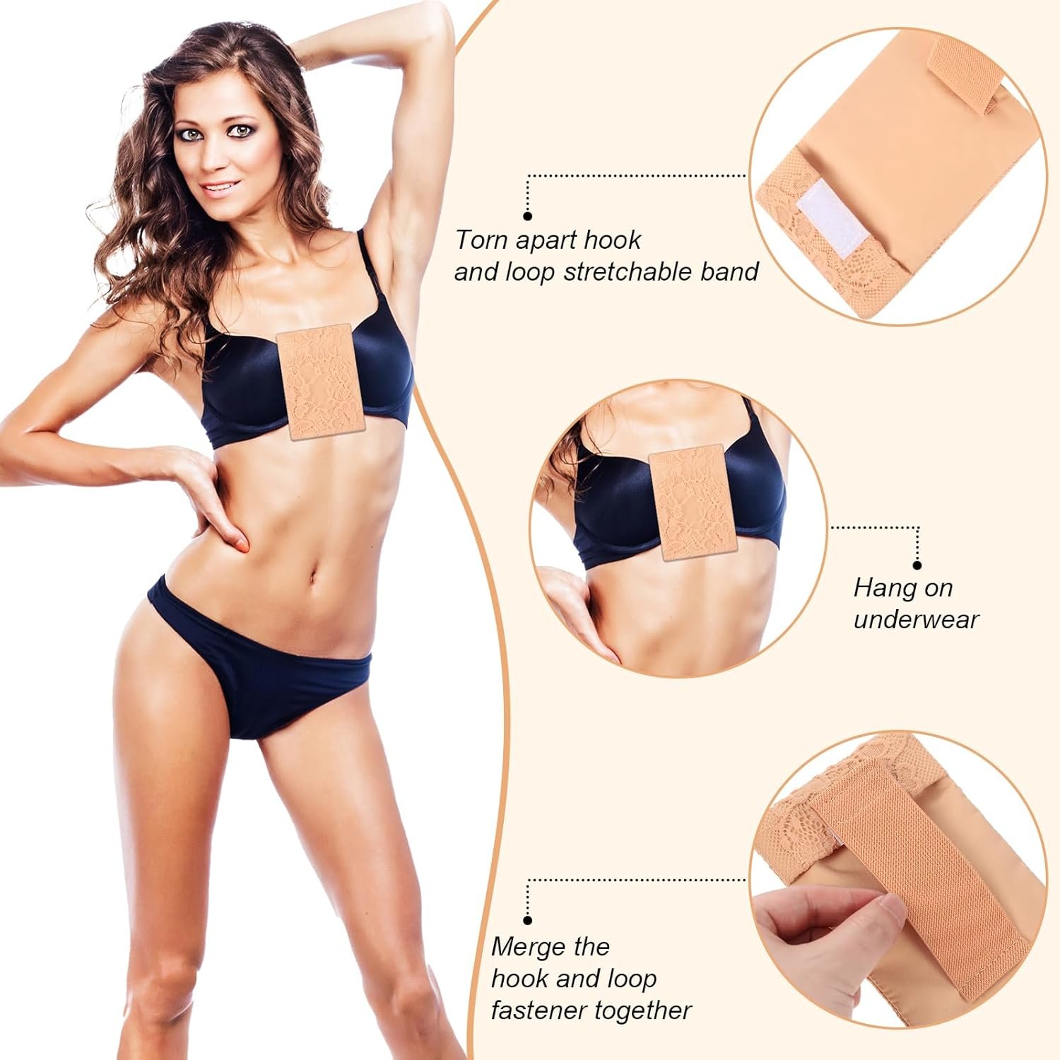 Secure and Safe: the bra wallet is subtle but secure, conceals your essentials such as ID, currency, credit cards, and other valuables from pickpockets and thieves; Pocket has a hook and loop stretchable band for easy placement or adjustment