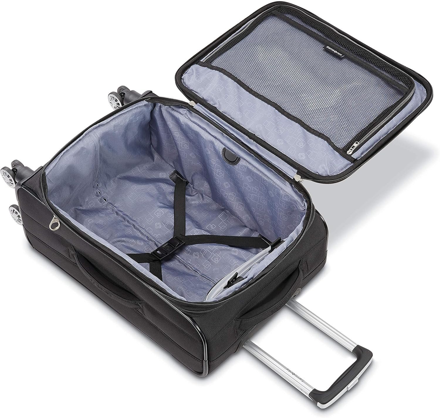 FOUR, MULTI-DIRECTIONAL OVERSIZED DUAL SPINNER WHEELS for effortless mobility, re-engineered lightweight
