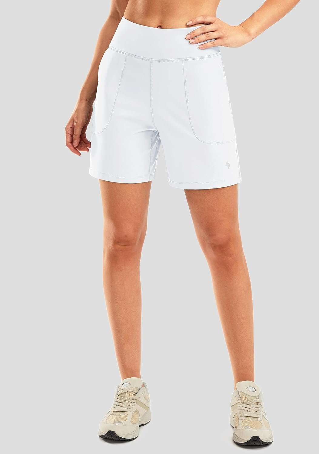 SANTINY Women’s 6” Athletic Long Shorts with 4 Pockets High Waisted Bermuda Shorts for Women Walking Running Casual