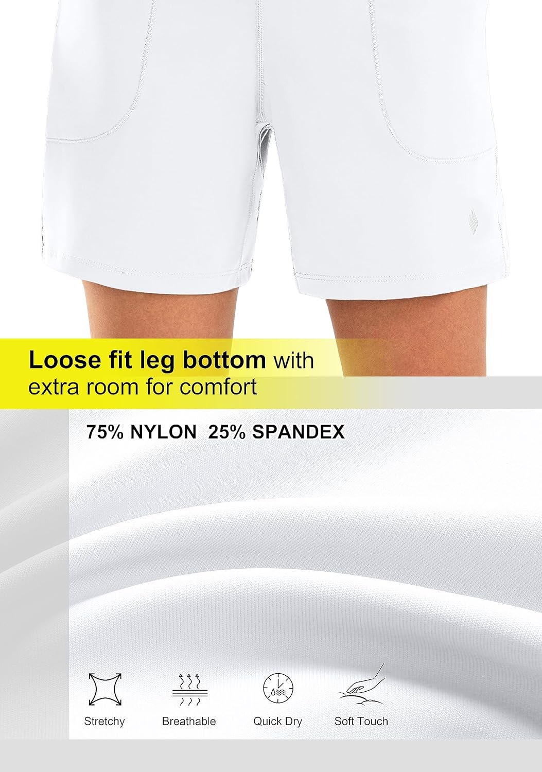 SANTINY Women’s 6” athletic long shorts made from Buttery soft and stretchy fabric feels weightless and provide maximum comfort. The modest length inseam offer enough length for ample coverage.