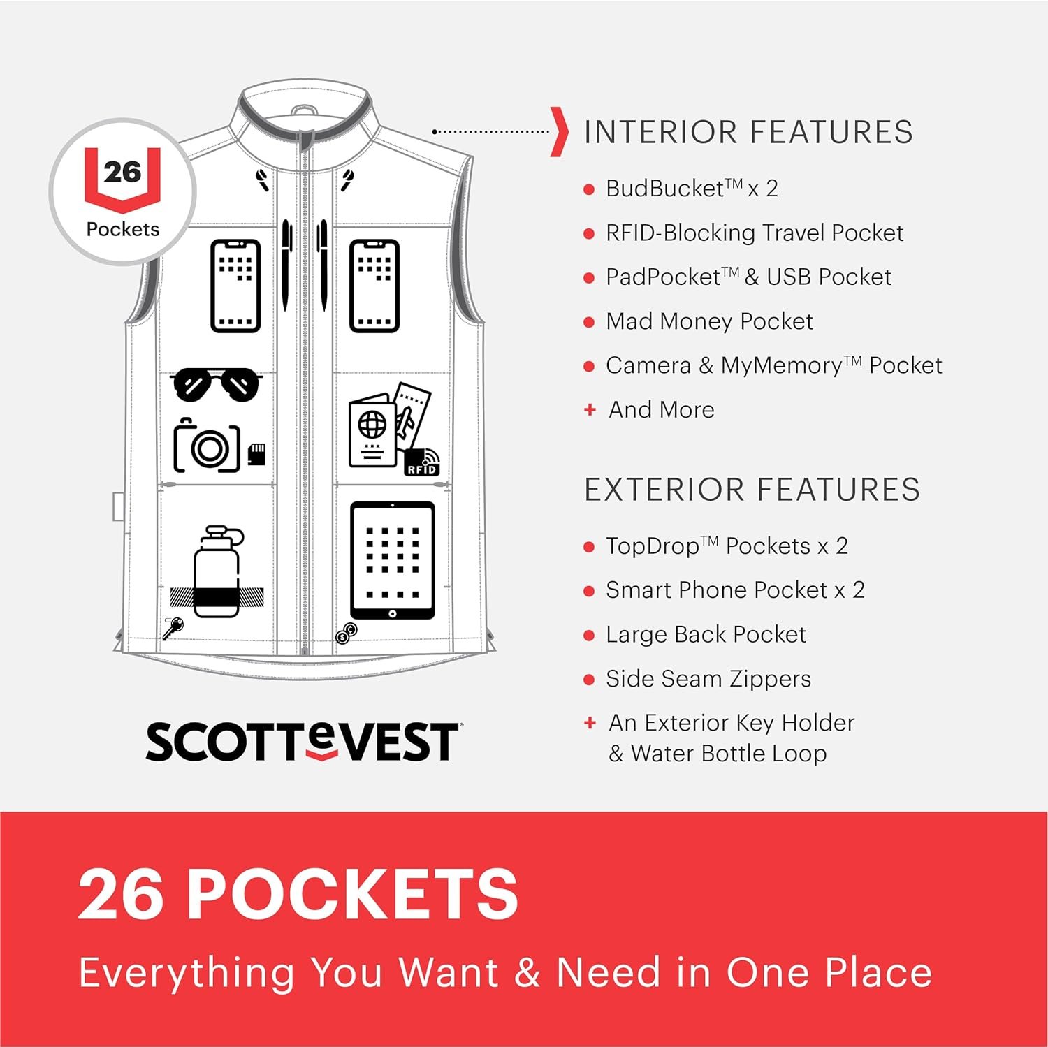 SCOTTeVEST Best Travel Vest for Men – 26 Hidden Pockets – Water Repellent for Travel & More