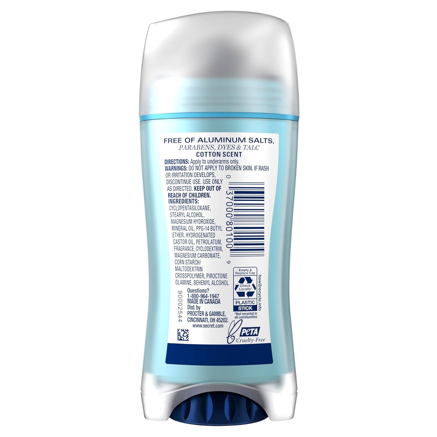 Secret Aluminum Free Deodorant for Women, 48hr Odor Protection, Free of Parabens Dyes Talc & Baking Soda, PH Balancing Minerals, Dry Solid, Cotton Scent, 2.4 oz