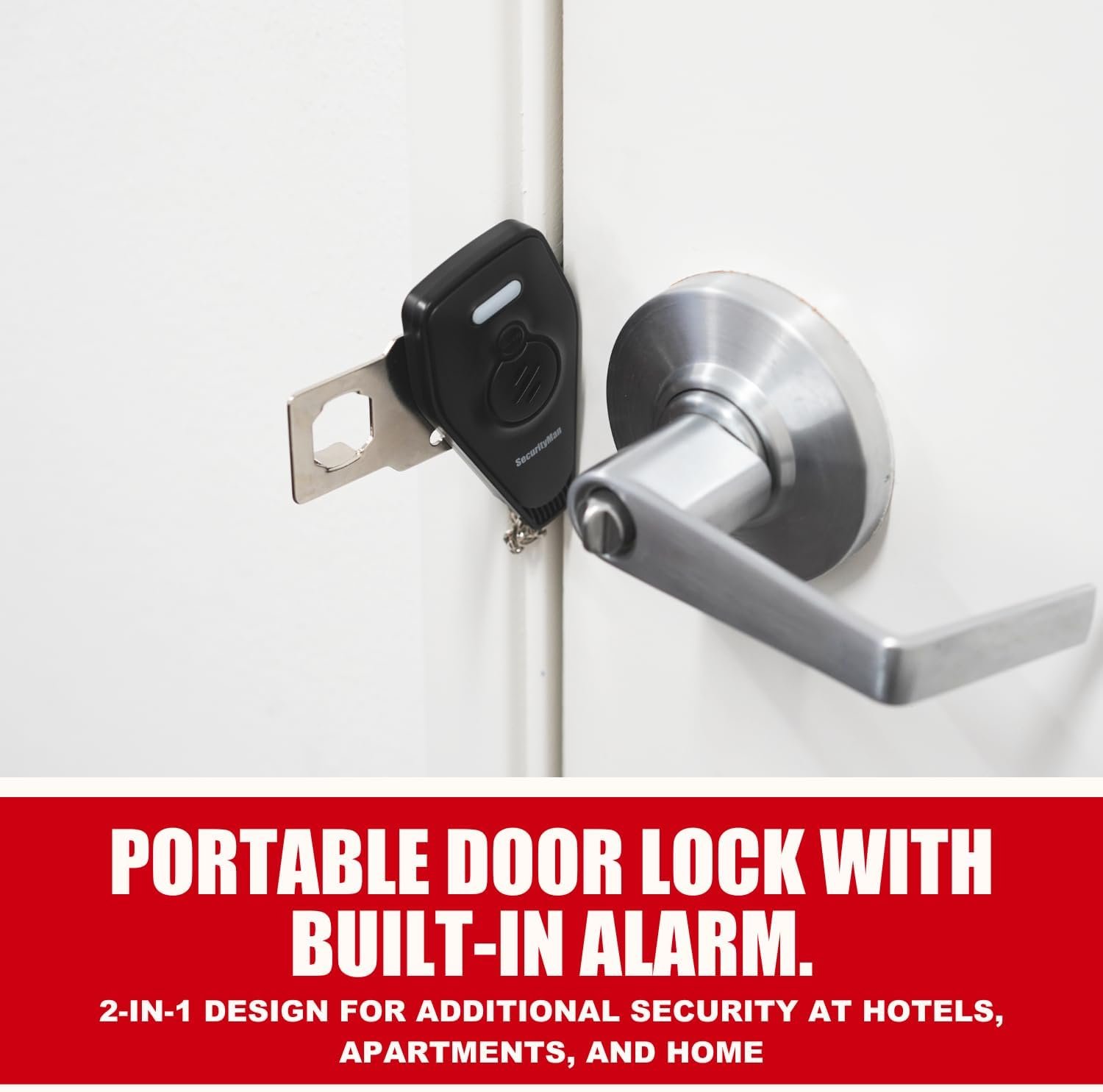 Securityman Portable Door Lock with Alarm | Hotel Door Locks for Travelers Security | Loud 130dB Door Security Device for Hotel Room, Apartment Home, & Travel Safety Inside for Women Children – Black