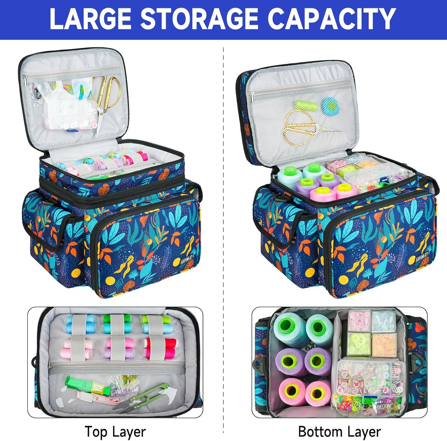 Sewing Supplies Organizer,Double-Layer Sewing Accessories Storage Bag,Protable Travel Sewing Box Sewing Basket for Sewing Tools,Leaf Pattern(Bag Only)