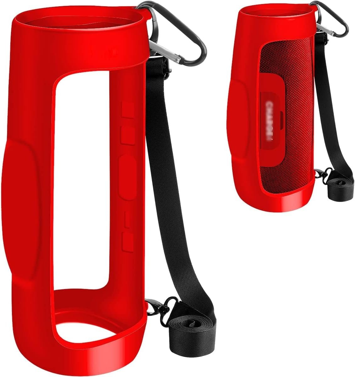 Silicone Case Cover for Charge 4 Portable Waterproof Wireless Bluetooth Speaker, Travel Gel Soft Skin,Waterproof Rubber Carrying Pouch with Strap(Red)