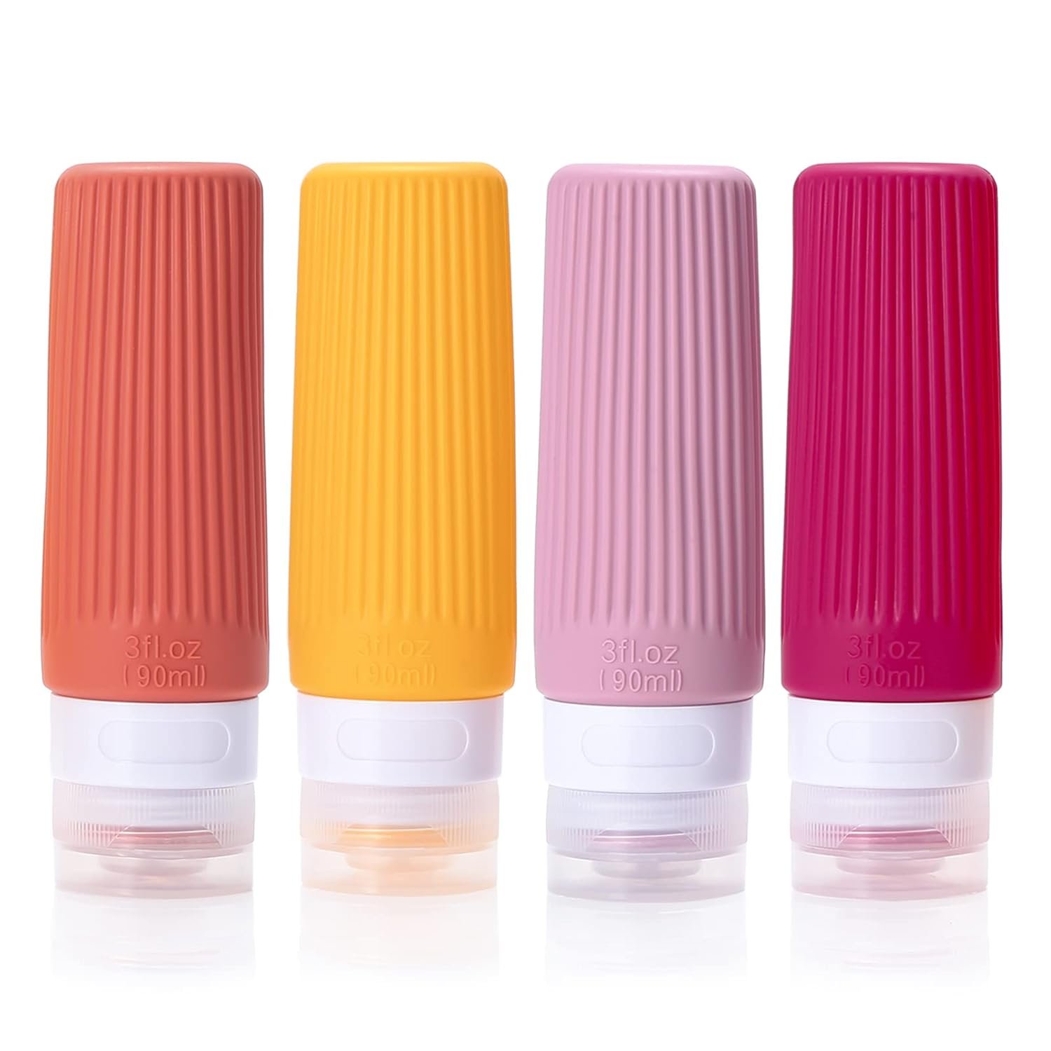 Silicone Travel Bottles for Toiletries,BPA Free,3 oz Leak Proof Refillable Portable Squeeze Empty Accessories Travel Size Liquid Cosmetic Lotion Shampoo Conditioner Bottles Containers 4 Pack Rose