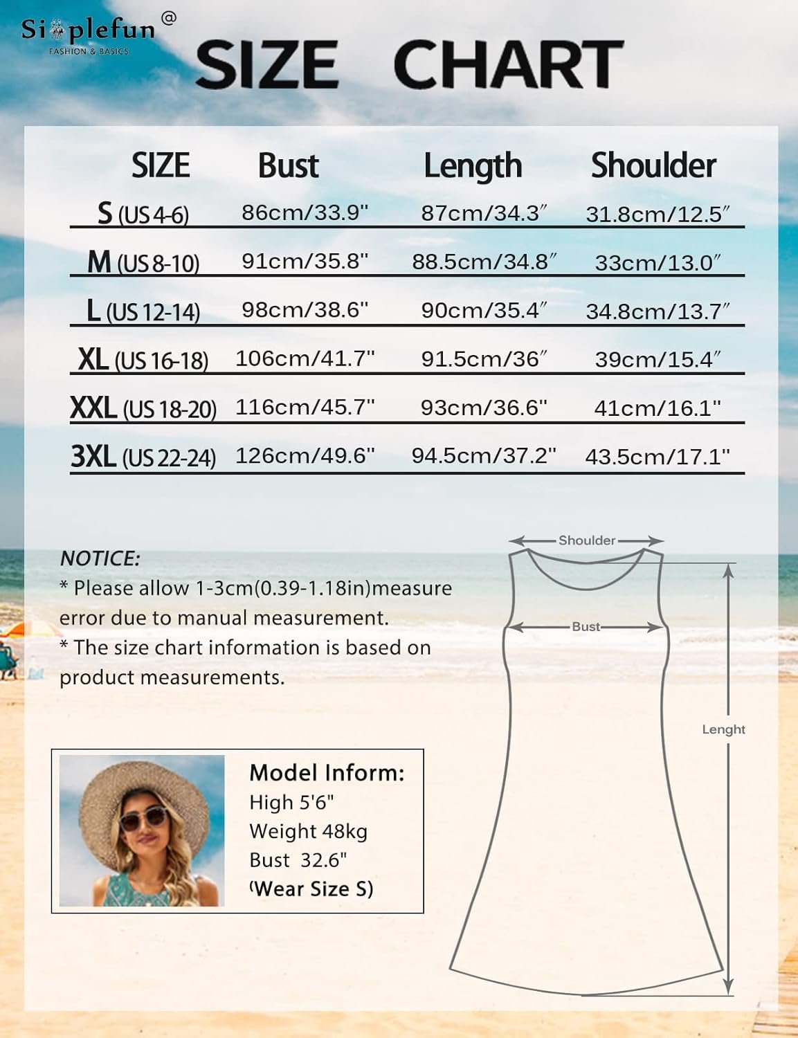 Simplefun Sundresses For Women Casual Beach Sleeveless Dresses Knee Length