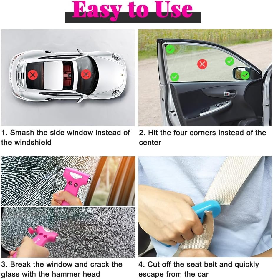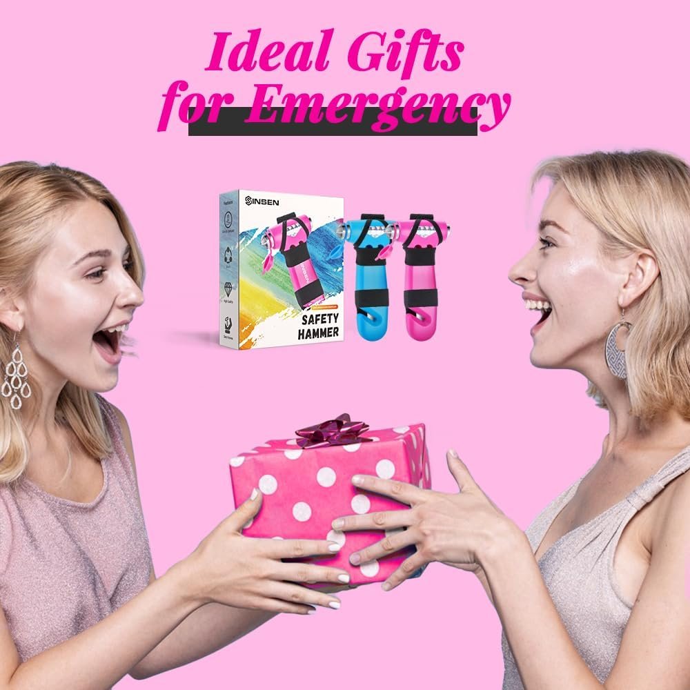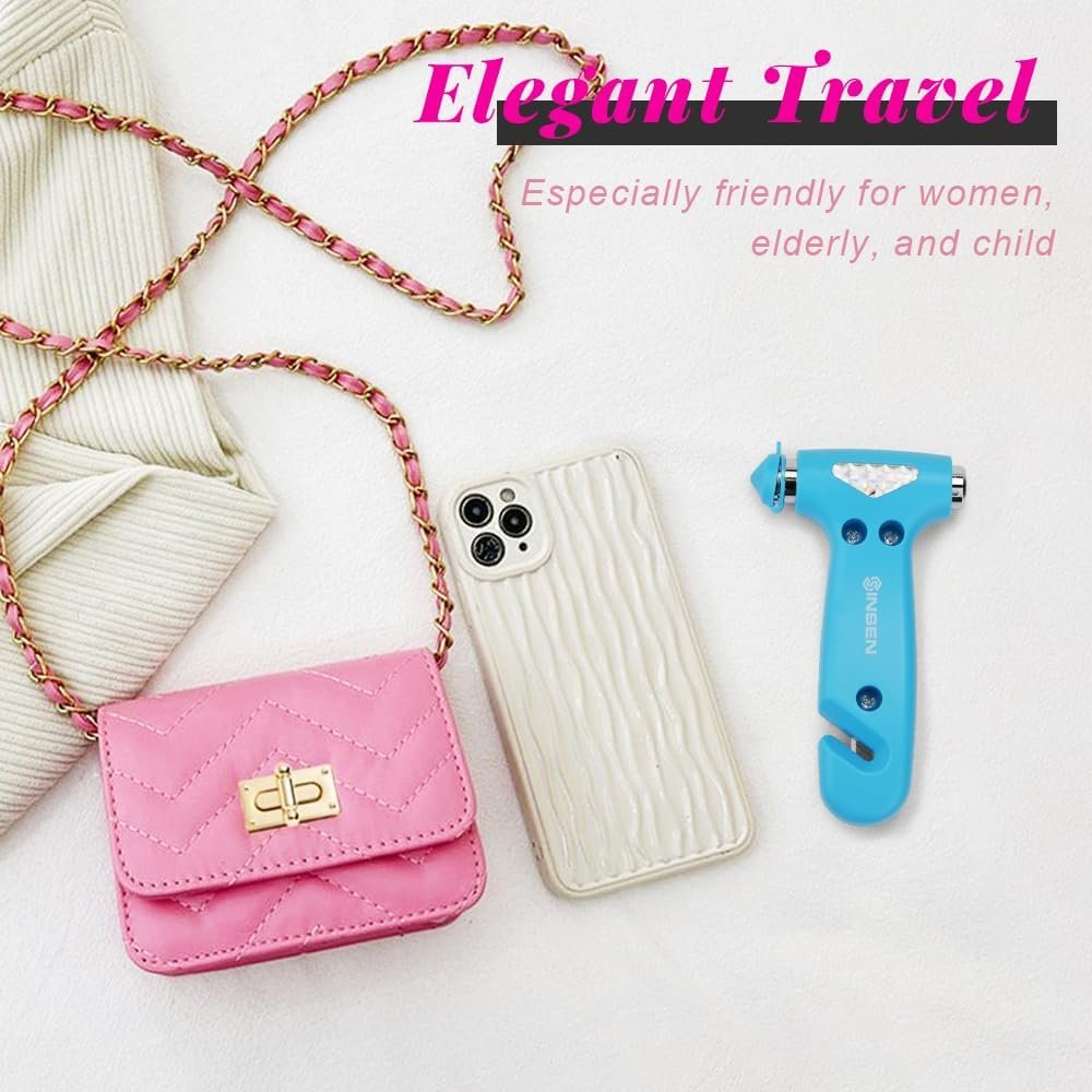 SINSEN Car Safety Hammer, Automotive Window Breaker and Seatbelt Cutter for Women, Roadside Emergency Kit, 3 in 1 Escape Tools, Road Trip Essential and Must Haves (1, Blue)