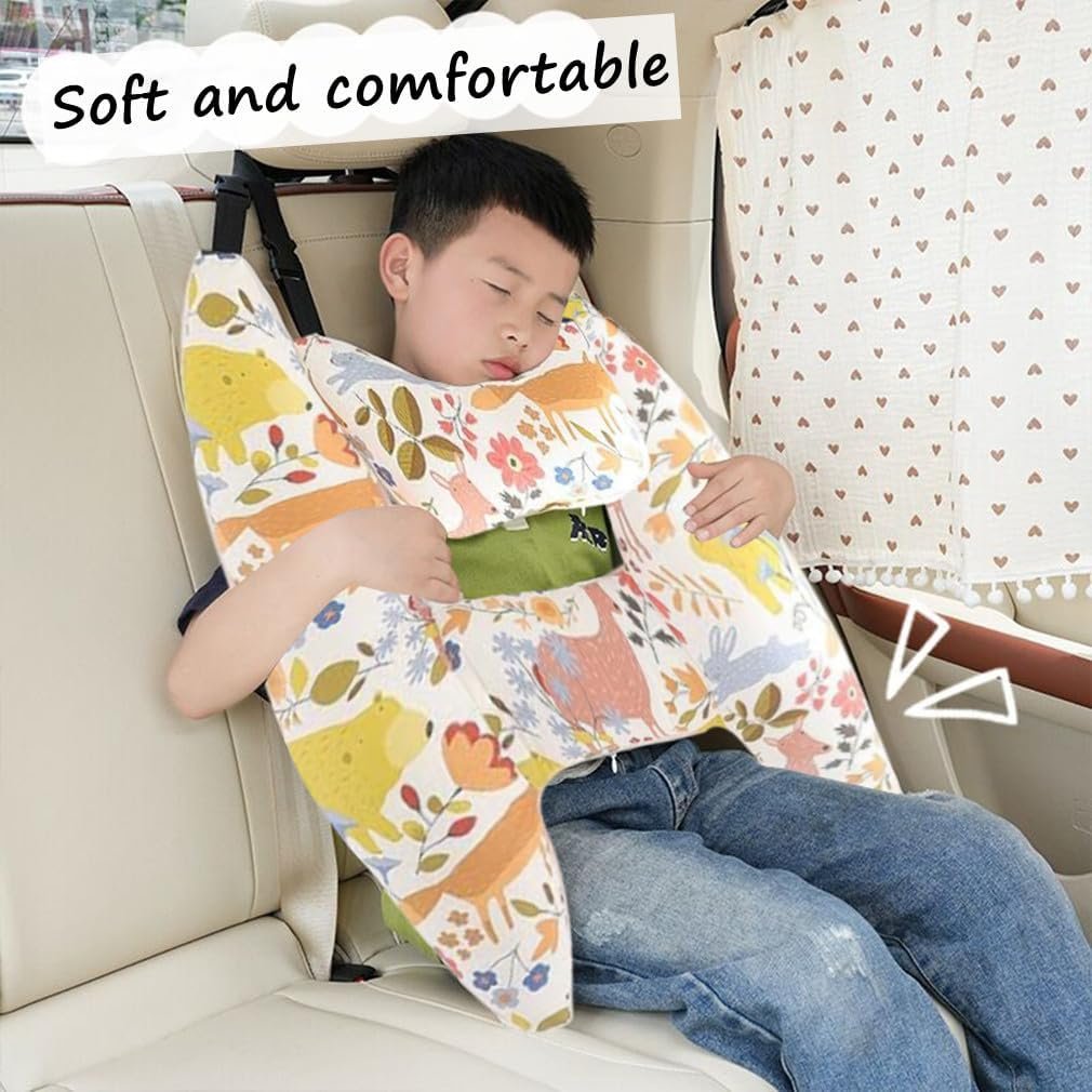SIQITECHNO Car Travel Pillow for Kids Adults Soft Neck Pillow for Long Journey&Road Trip Washable Breathable Head and Body Support Pillow Car Seat Belt Pillow Car Aircraft (Deer&Bear + Headrest)