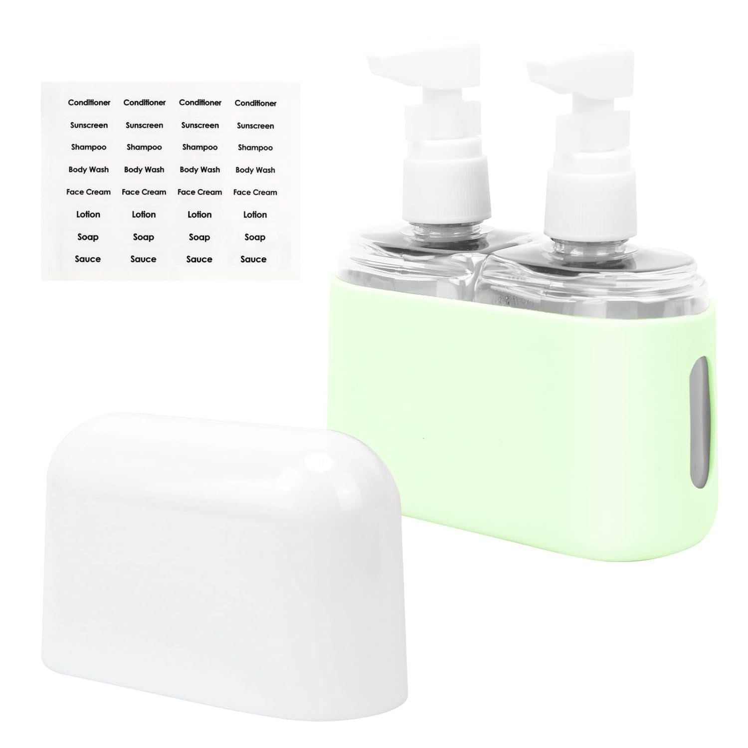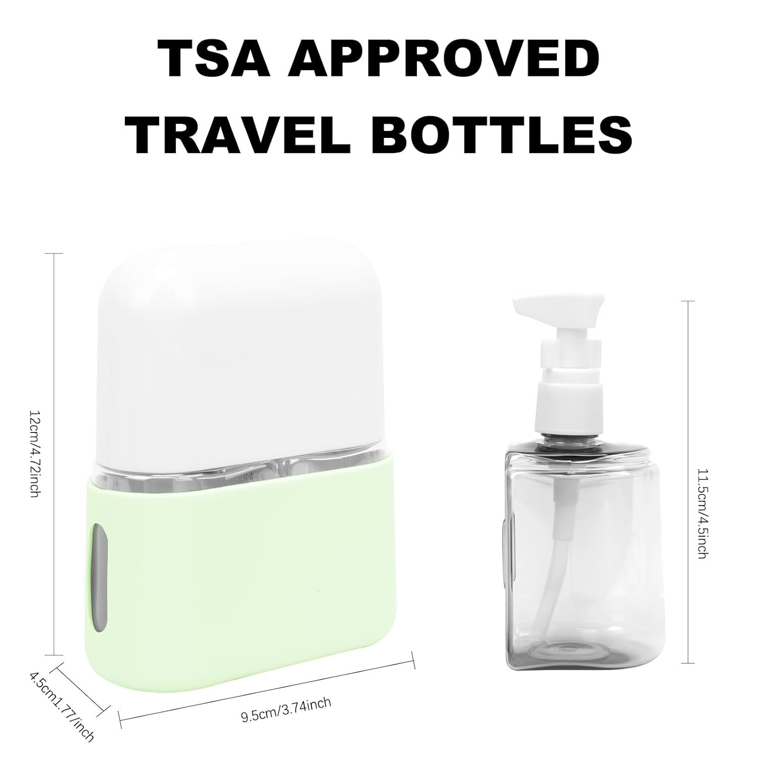 Skycase Travel Bottles – Leak Proof Refillable TSA Approved Travel Size Toiletries, 2 in 1 Liquid Bottles Containers with Labels and Funnel Airplane Accessories Kits for Lotion Liquid (Green)
