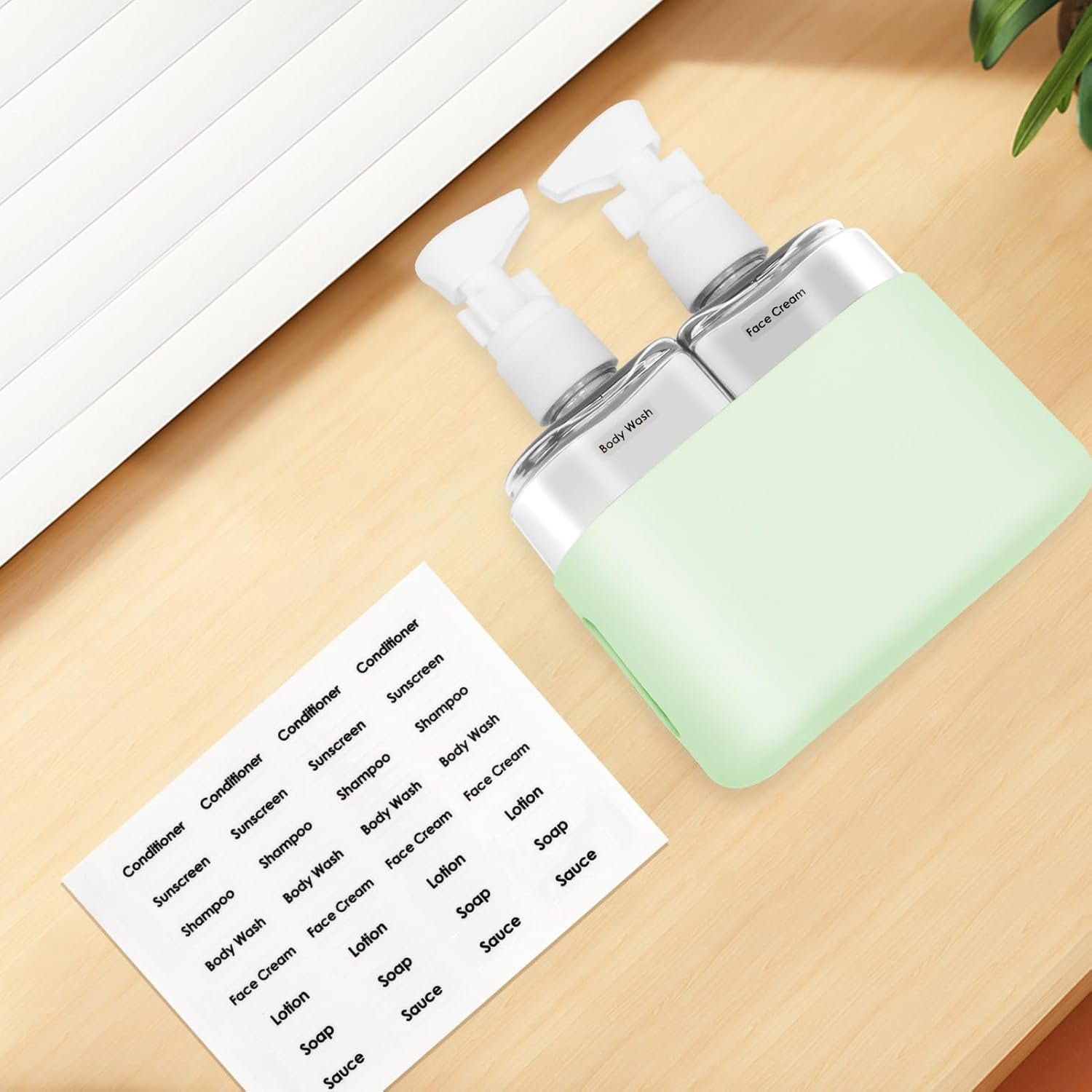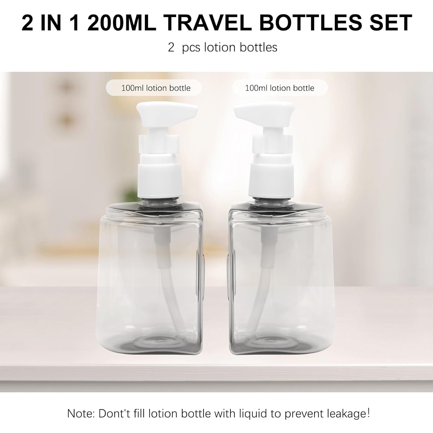 Practical Combination Set: Travel bottle kit includes 2 * 100 ml lotion bottles,1 waterproof label (32pcs), 1 portable box (2 in 1). Set of small bottles, perfect for shampoo, conditioner, body wash, lotion, toner and more