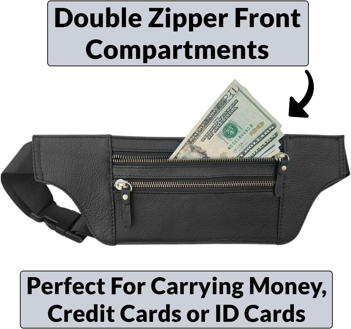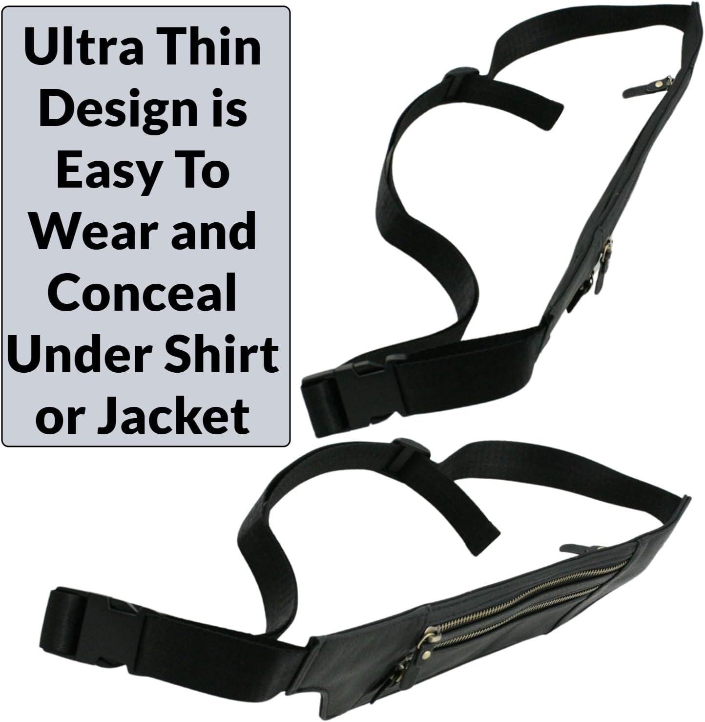 Skyway Leather Travel Money Belt Hidden Travel Fanny Pack Slim Waist Bag