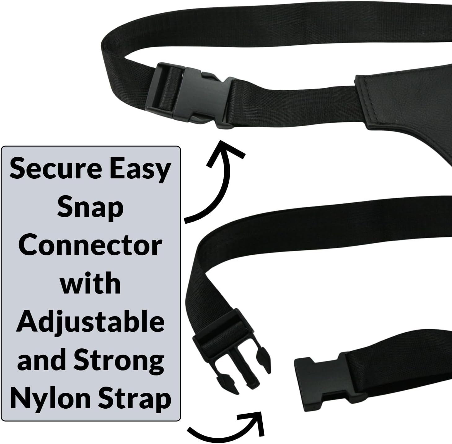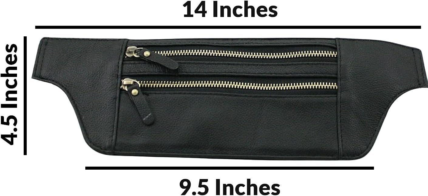 Skyway Leather Travel Money Belt Hidden Travel Wallet Slim Fanny Pack Waist Bag Discover the Ultimate Travel Companion – Embark on your adventures with confidence and style with the Skyway Leather Travel Money Belt. Crafted from superior genuine leather combined with durable nylon, this travel fanny pack offers unmatched durability and strength. Designed to cater to both men and women, this sleek accessory measures 14 inches in top width, 9.5 inches in bottom width, 4.5 inches in height, and a slim 3/8 inch in thickness. Sleek and Unnoticeable – The Skyway fanny pack is ingeniously slim and lightweight, designed to be easily hidden and concealed under your shirts and jackets. Its low profile is virtually undetectable under clothing, making it the perfect safeguard for your valuables. Whether you’re navigating bustling city streets or exploring exotic locales, this hidden money belt ensures your money, keys, phone, credit cards, and ID cards remain safe and secure, right by your side. Ease of Use with Secure Snap Closure – Experience hassle-free access with the easy-to-use snap closure that snaps shut securely without any worry of coming loose. Accompanied by a strong adjustable nylon belt, it provides not just easy adjustment but also superior waist comfort. Travel with Peace of Mind – The ultra-slim design of this fanny pack makes it the ultimate hidden travel wallet. Keep your money, phone, ID cards, and credit cards tucked away safely while you enjoy your travels without a worry. Organized and Accessible – The Skyway Leather Travel Money Belt features 3 compartments with strong and durable zippers, including 2 zipper compartments in front and 1 zipper compartment on the back. These compartments are designed for easy operation and are extremely durable, ensuring your essentials are organized and accessible whenever you need them. The Skyway Leather Travel Money Belt is your go-to accessory for keeping your valuables secure in a stylish and discreet manner.
