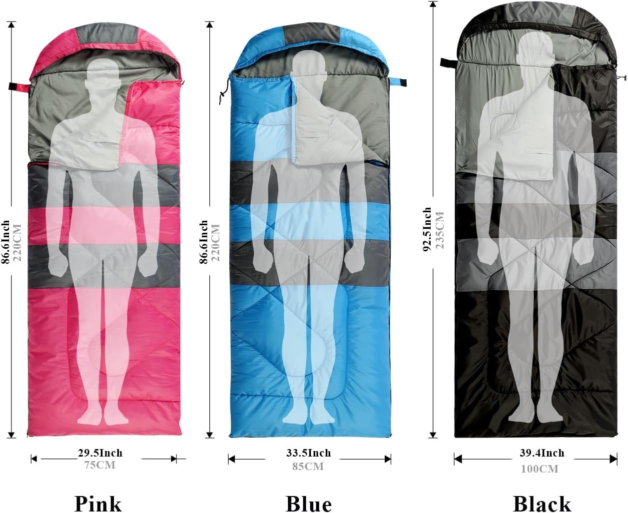 Comfort for All Ages: Sleep well with Perihw sleeping bag, three different color ( Pink/Blue/Black) loved by everyone. No matter how tough the terrain or long the day, our camping sleeping bags are engineered to guarantee you a good night’s sleep.