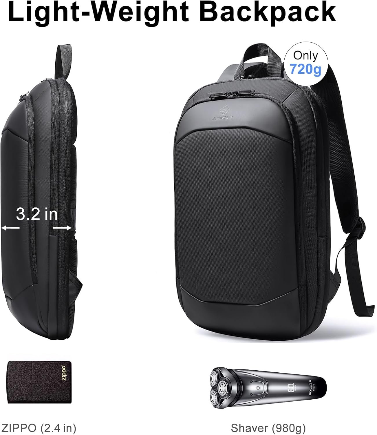[Slim & Expandable Travel Backpack]This slim laptop backpack for men is ultra thin,compact and also expandable to carry big objects.Open the durable YKK zippers,the packaging space can be increased from 13L to 25L.The luggage strap allows this slim backpack fits on luggage/suitcase which frees your hands.This laptop bag very suitable for short-term travel.