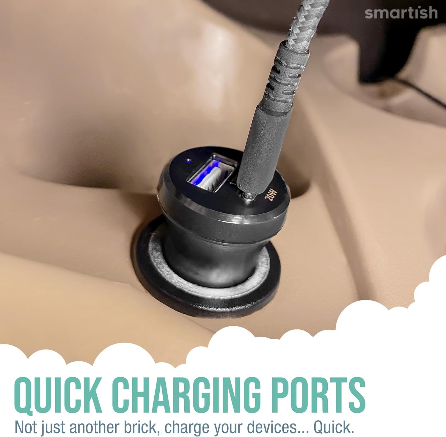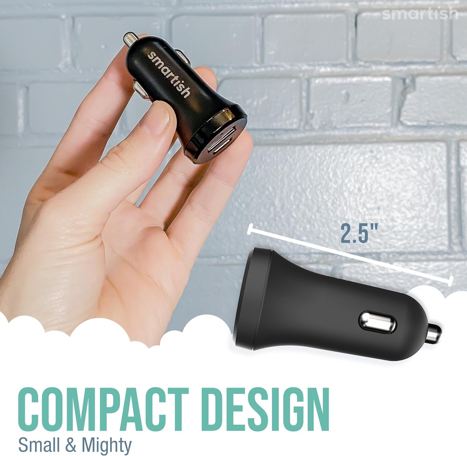 Smartish 2 Port USB Car Charger – Volt 45 Maximum Speed 4.8 Amp Quick Charger Compatible with iPhone Android and All USB Devices (Silk) – Black