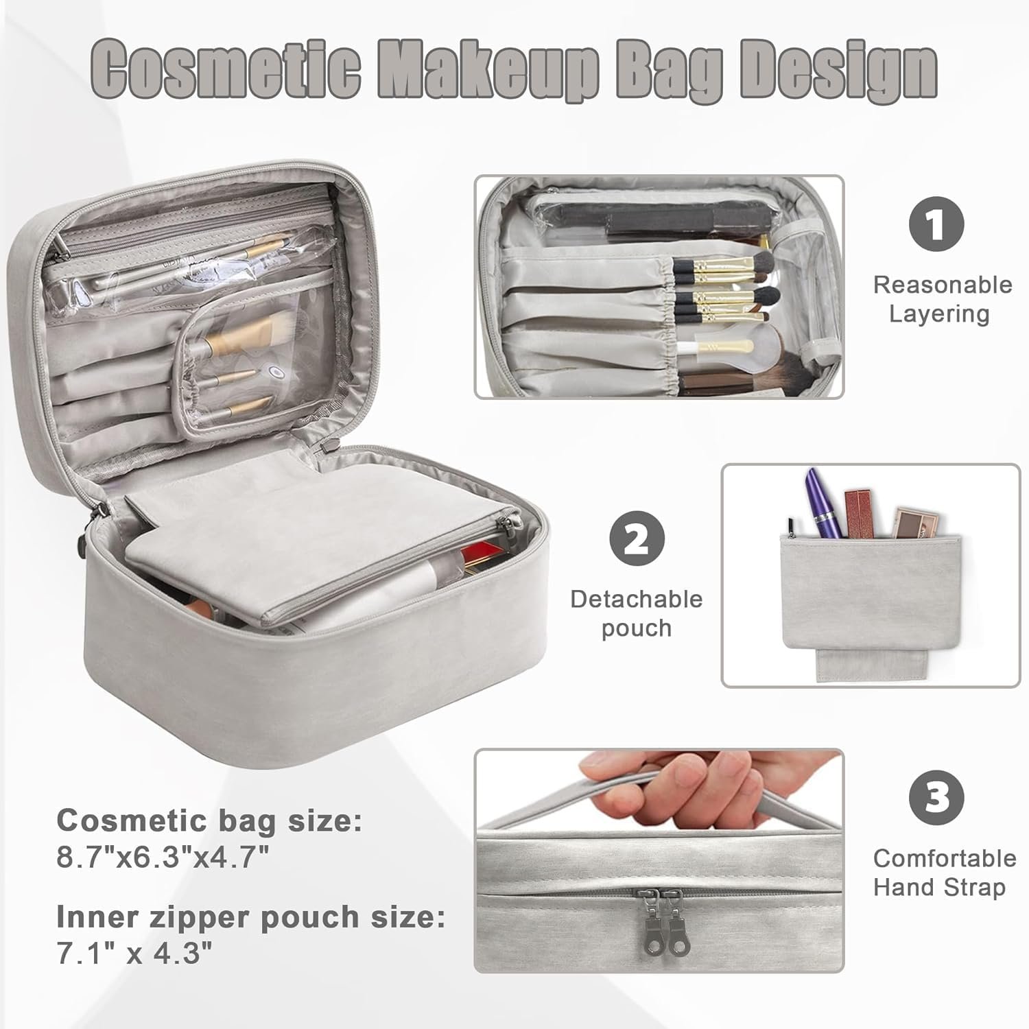Premium Quality Cosmetic Makeup Bag: The makeup cosmetic bag is made of high quality PU leather which is durable and waterproof with professional design to keep makeup brushes from damaging. It is big enough to organize all your beauty essentials neatly in place.