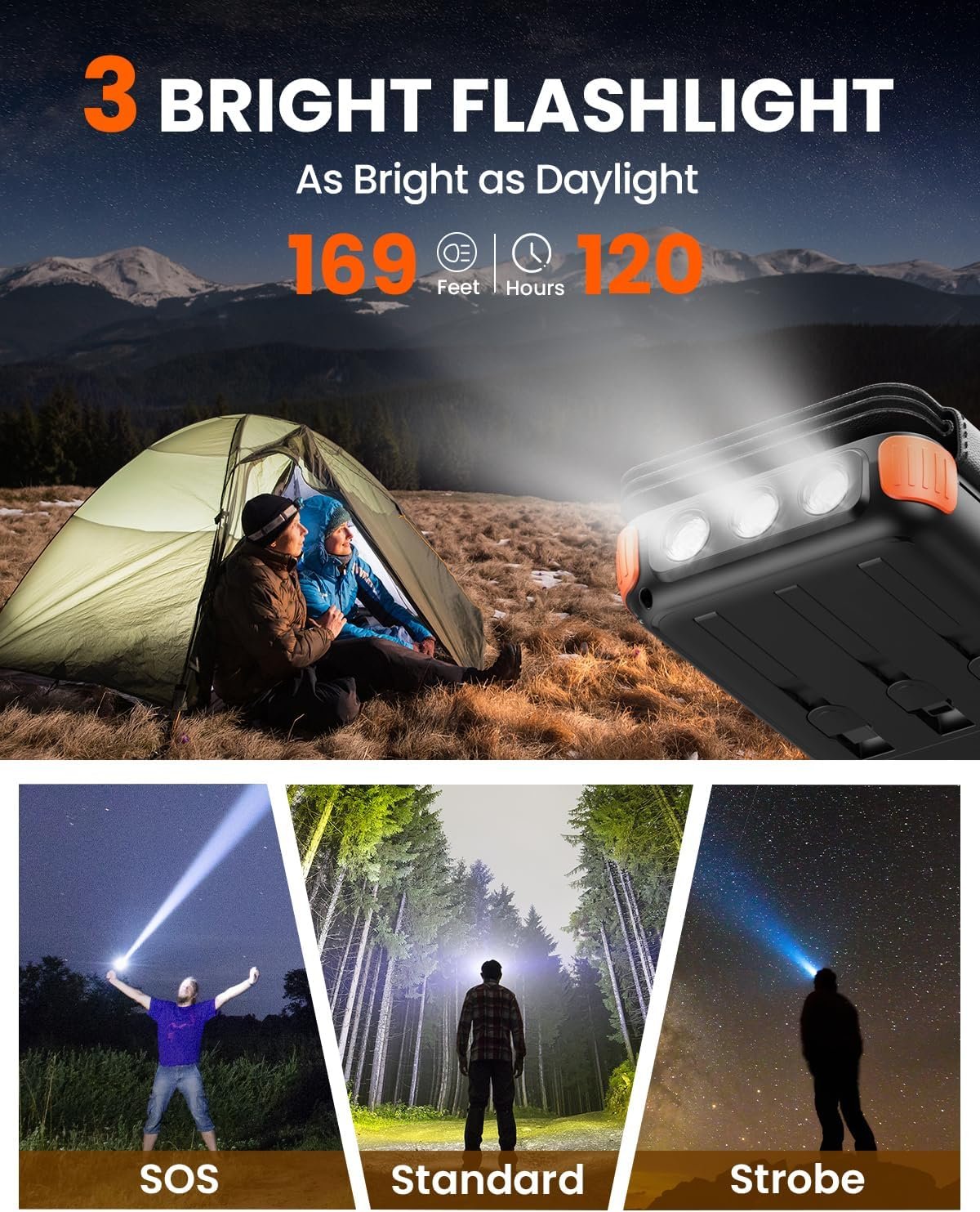 【3 Super Bright LED Lights】The solar power bank is built-in 3 super bright LED flashlights with 3 modes, which can provide continuous lighting for more than 100 hours after fully charged. What you get: Solar Power Bank x1, USB C Cable x1, User Manual x1.