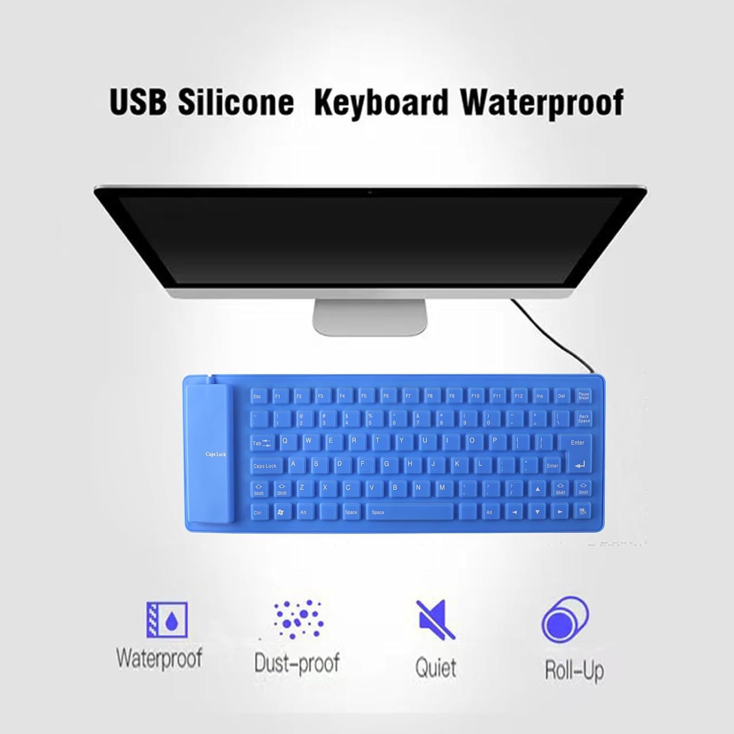 Soft Silicone Keyboard, Foldable Keyboard, Silent, Portable Silicone Wired Keyboard, USB+PS2 Interface, Convertible, Waterproof and dustproof, for Desktop Computers, notebooks, 85 Keys (Blue)