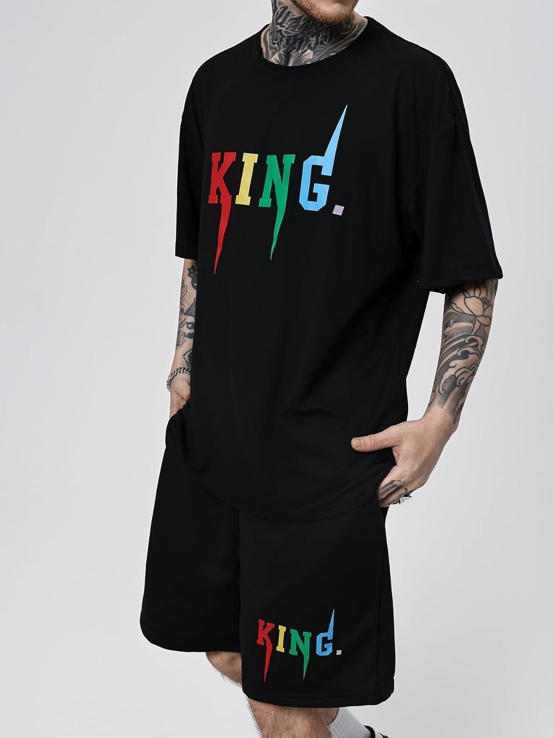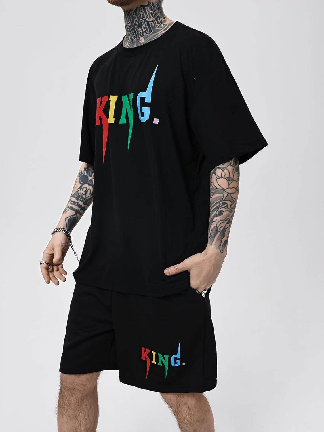 SOLY HUX Men’s Letter Graphic Short Sleeve Tee and Drawstring Waist Track Shorts Set Casual 2 Piece Outfit