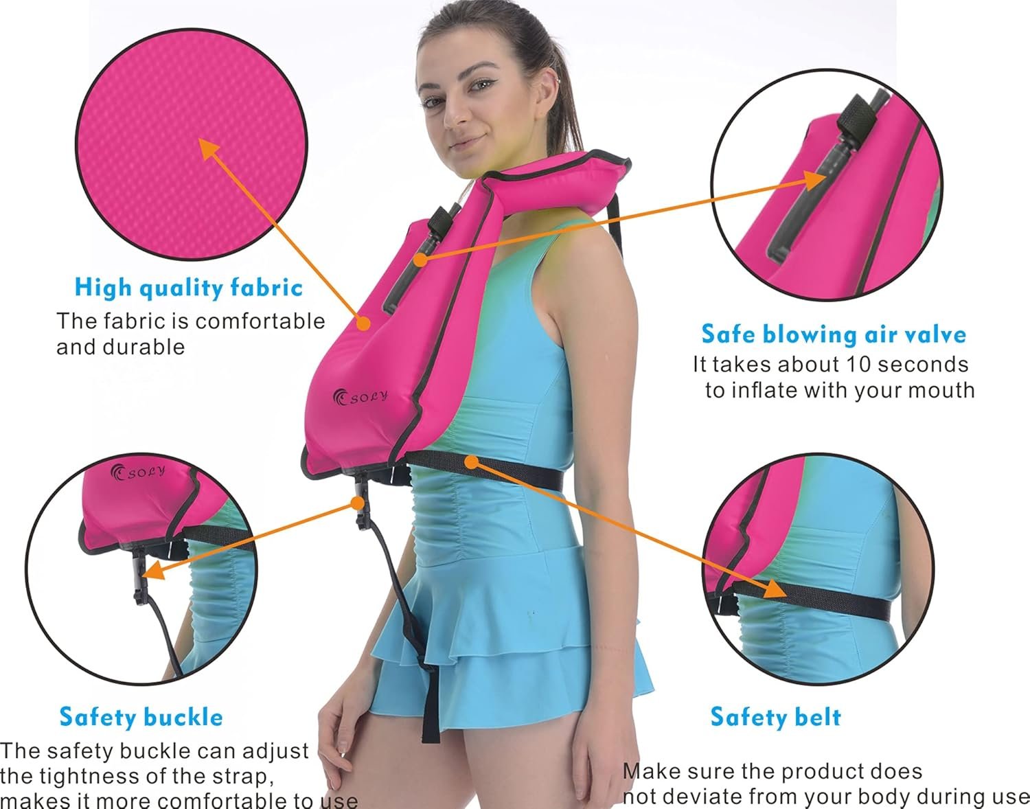 SOLY Inflatable Snorkel Vest Adult, Snorkeling Vest Adjustable Light Snorkeling Jackets for Diving LowImpact Water Sports Safety