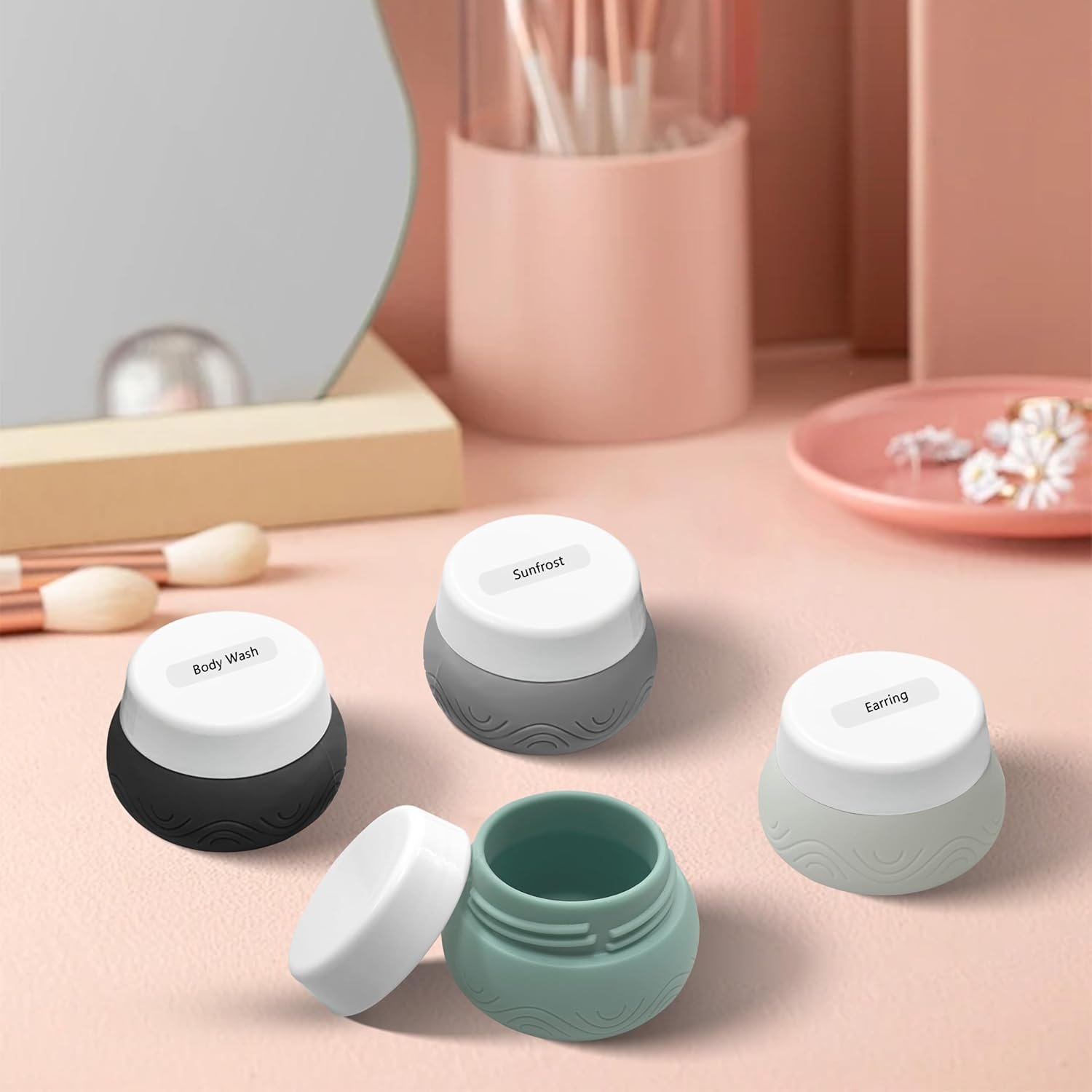 Widely Use: Our set includes 4 travel silicone cream jars, each in a different color. The travel silicone cream jars with lids can store cosmetics, creams, lotions, scrubs, vitamins, beads, small jewelry etc