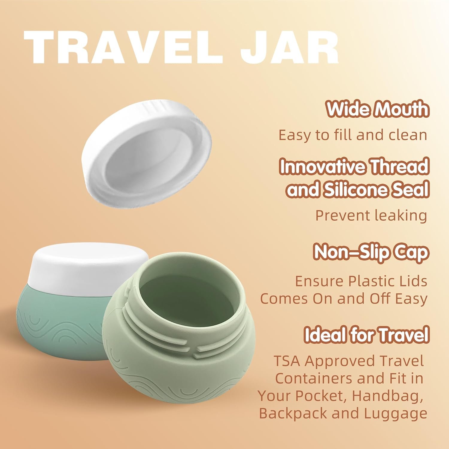 TSA Approved: Our small size silicone cream jars make them perfect for carrying on board during air travel. Small size fit in your pocket, purse, handbag, back pack and luggage, so you can carry your favorite toiletries wherever you go