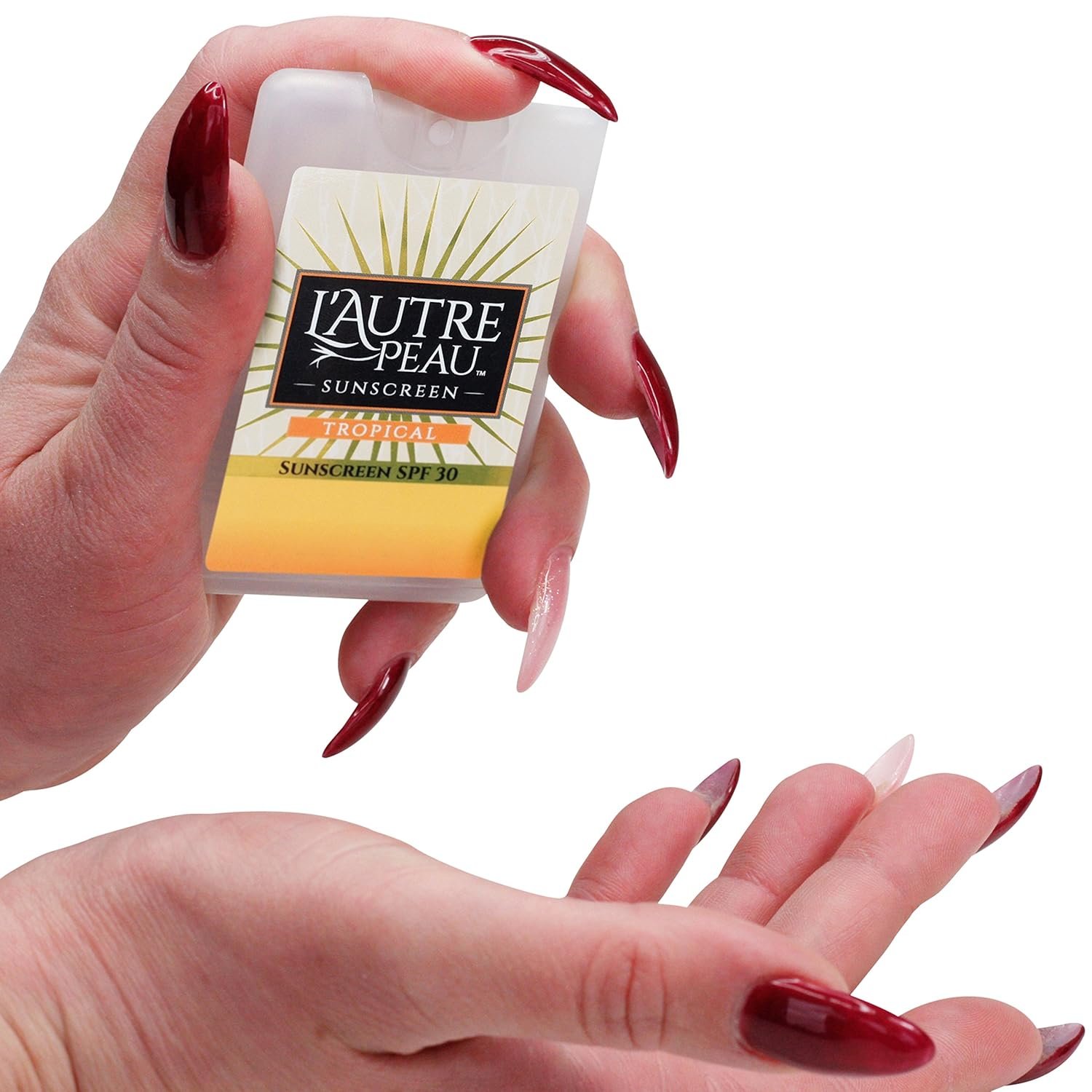 SPF 30 Sunscreen Multi-Pack by L’AUTRE PEAU | Travel Size Sunscreen for Men, Women, and Kids | Non-Greasy Water Resistant | Tropical Scent | TSA Approved | (3 Pack Sunscreen Credit Card Spray)
