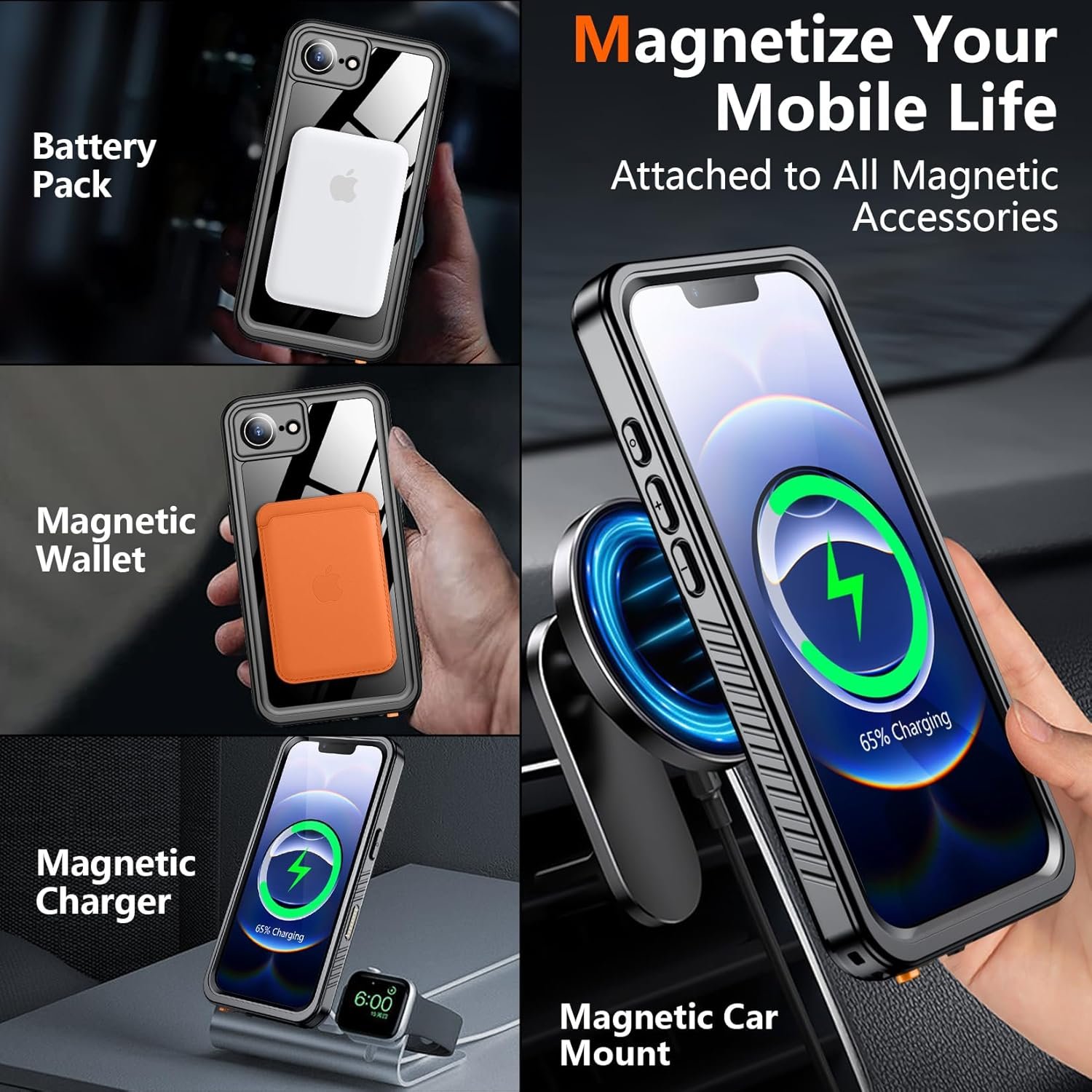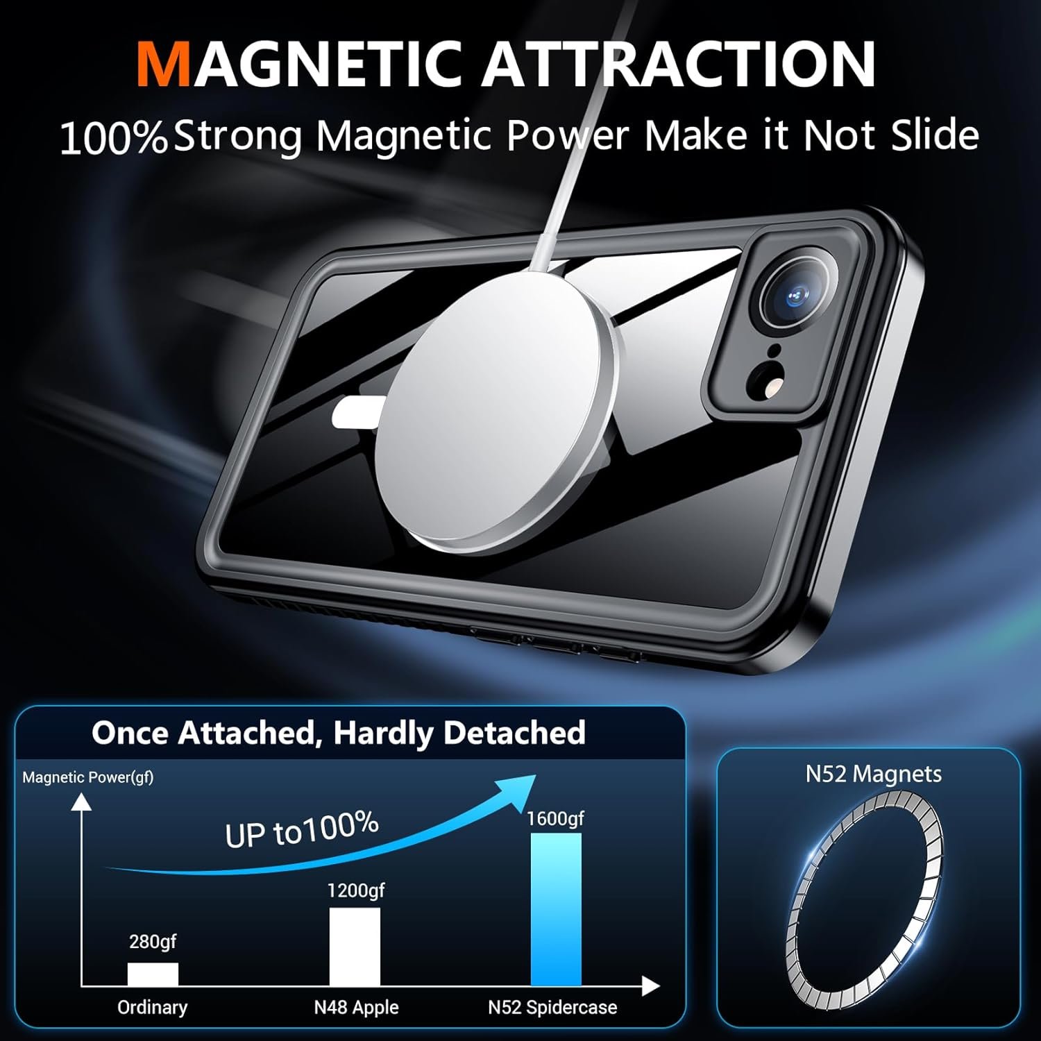 SPIDERCASE Magnetic for iPhone 16e Case Waterproof,Built-in Screen & Camera Lens Protector[IP68 Underwater] [Military Grade Shockproof] Full Body Protection Phone Case, Black/Clear