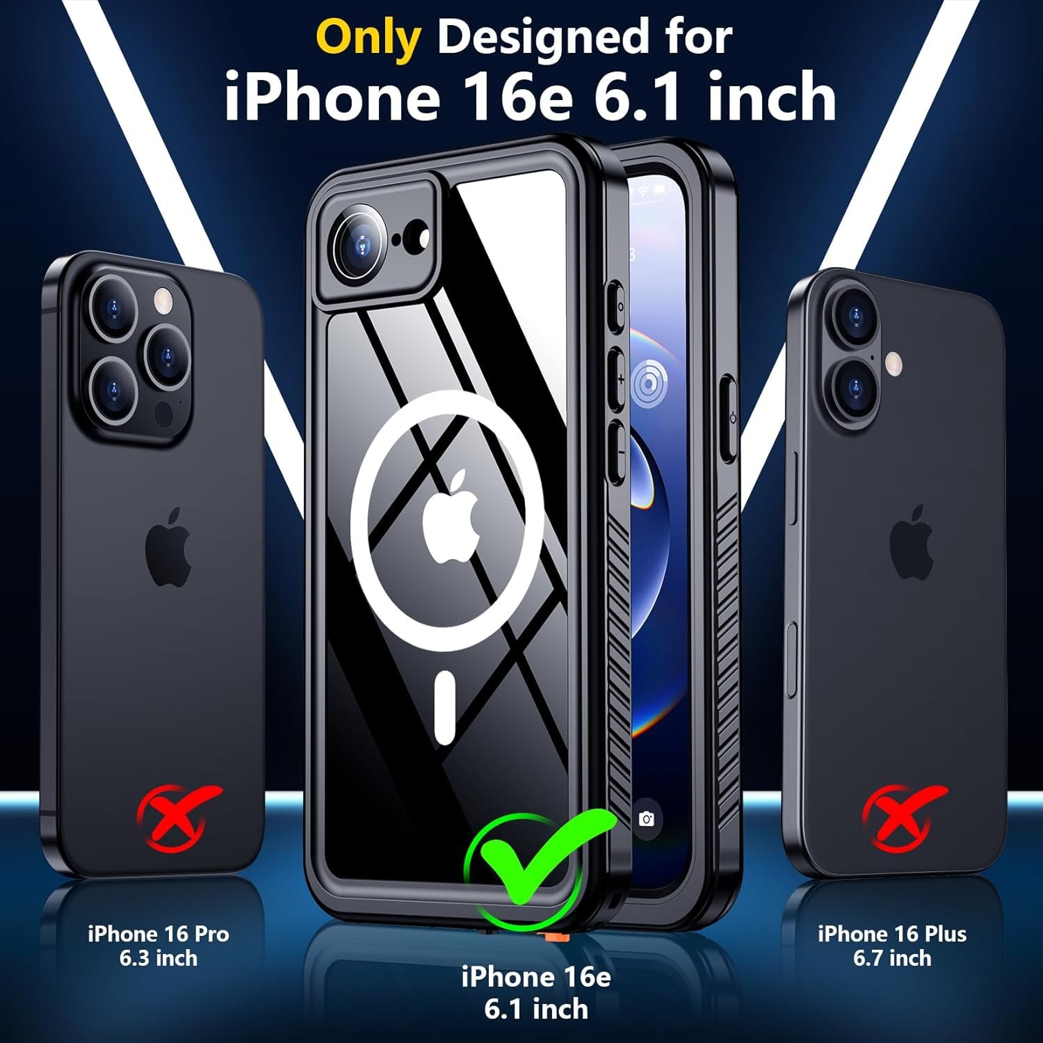 【IP68 Waterproof】: This iPhone 16e waterproof case is resistant to water, dust, dirt, snow and spills and splashes from everyday liquids. In addition, the washable design ensures easy cleaning and keeps your phone and case always stay clean and looks like new. (Note: Please check all of the plugs are sealed before using)