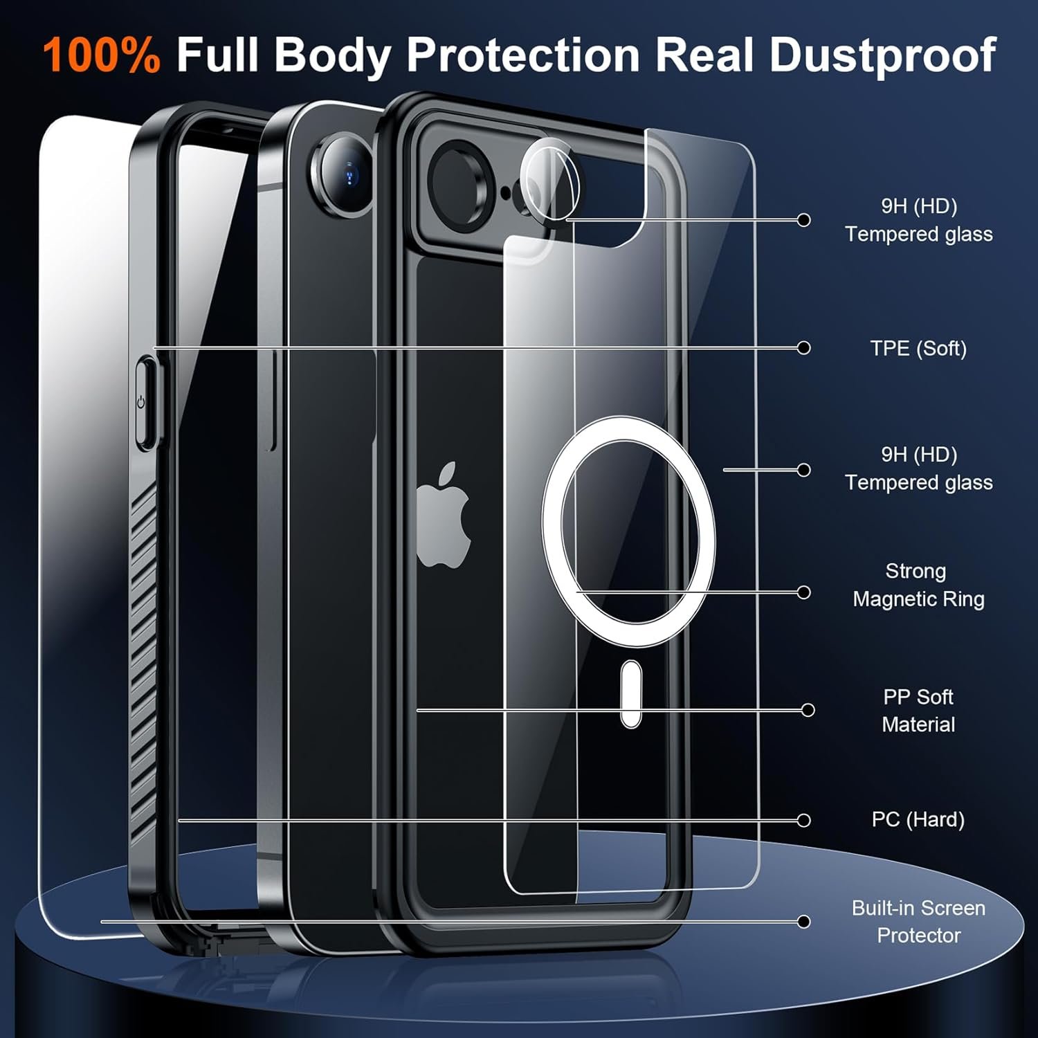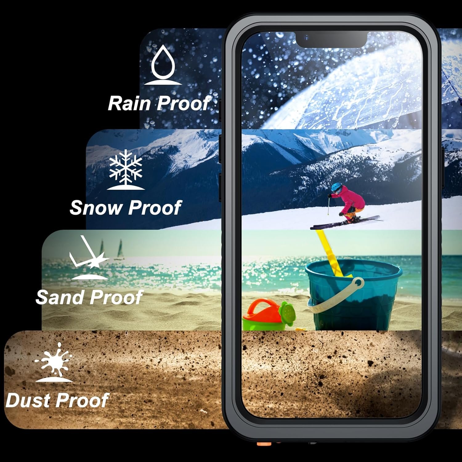 【Real Dustproof & Shockproof】: Certified MIL-STD 12 ft drop test and full protection prevents your device from damage. Made with flexible rubber back cover and hard inner cover, provides shockproof and anti-drop protection and daily wear and tear. 360° full sealed ensures no dusts and dirt enter the case, protects your phone from scratches and fading. It can also work flawlessly under different weather conditions and any bad environment. Perfect for any underwater, outdoor sports and daily use.