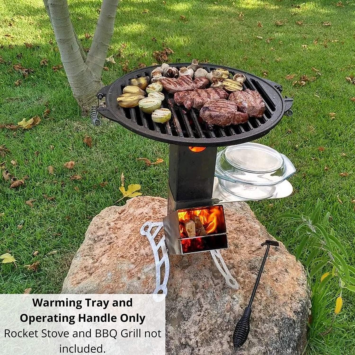 Upgrade your outdoor cooking experience with this Warming and Thawing Tray along with a dedicated operating handle for lifting hot utensils, removing excess ash and dismantling the stove while it’s still warm.