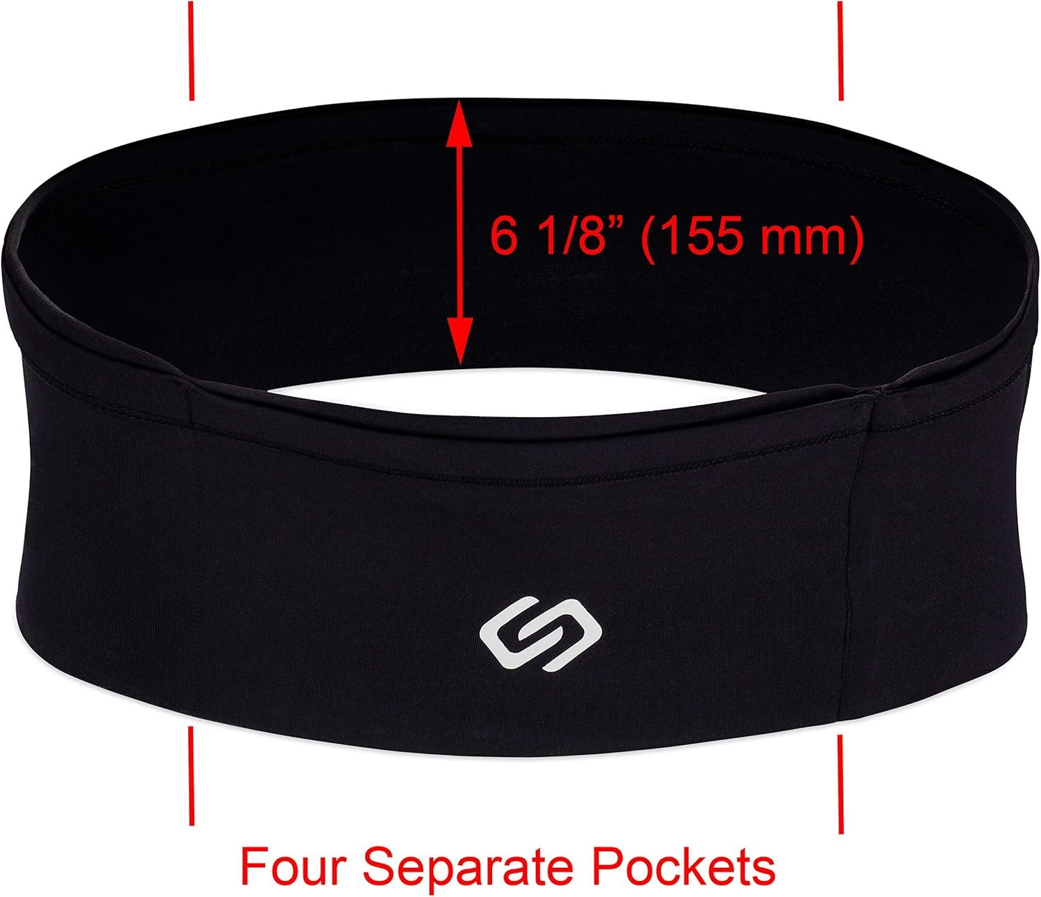 Sporteer VersaMax Running Belt, Travel Belt, Workout Waist Pack – Large Security Pockets Fit All Smartphones, Money, Passport, and Other Valuable Items (Black, Large)