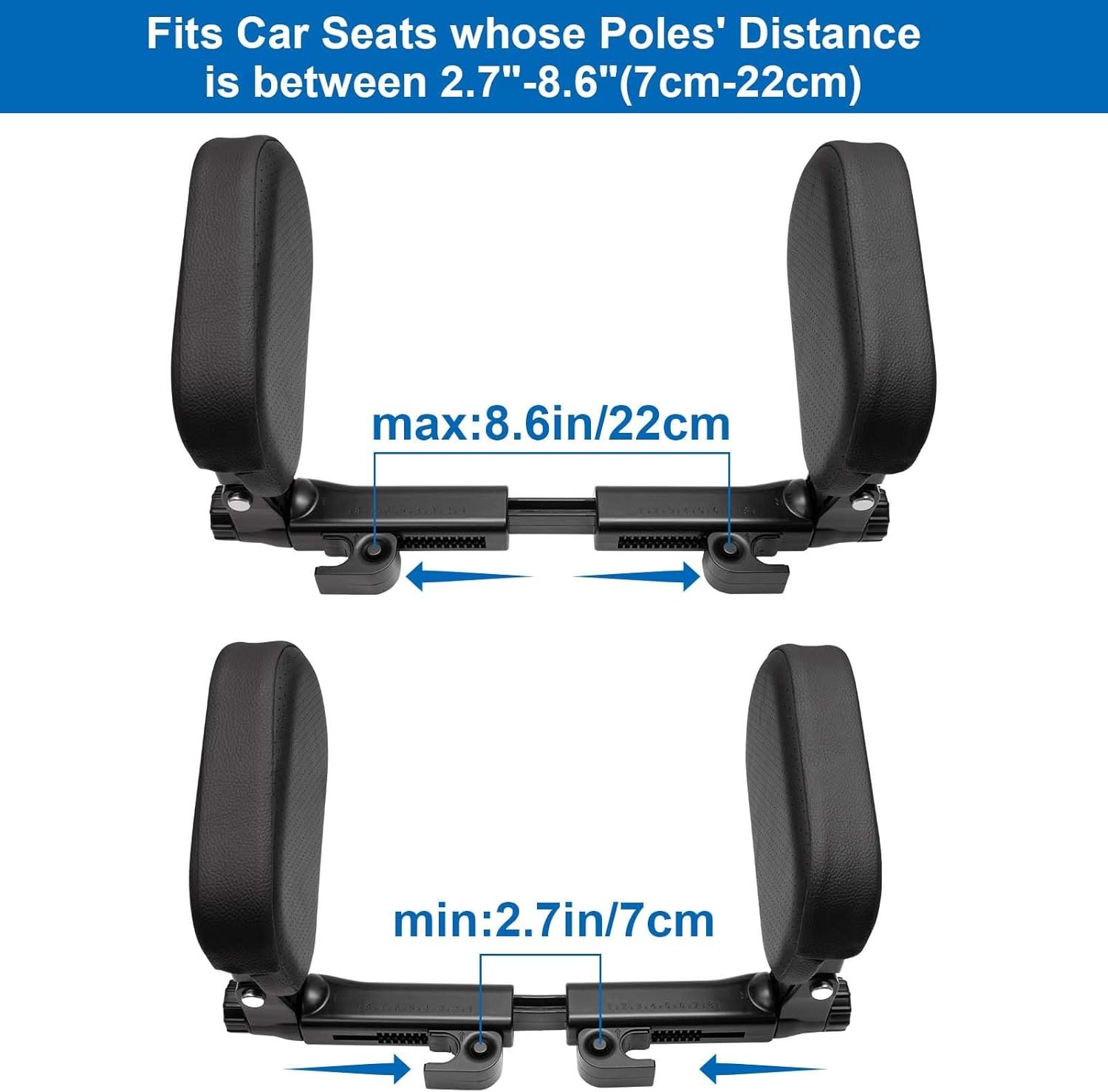 Wider Compatibility–Our car seat headrest pillow ONLY fits car seats with a pole. The pole distance must be between 2.7 to 8.6 inches (7 cm to 22 cm), providing a wider range than many other options. Before purchasing, confirm that your car seat has metal bars and check the pictures above to ensure compatibility. Important: Seats without metal bars cannot be installed or used.