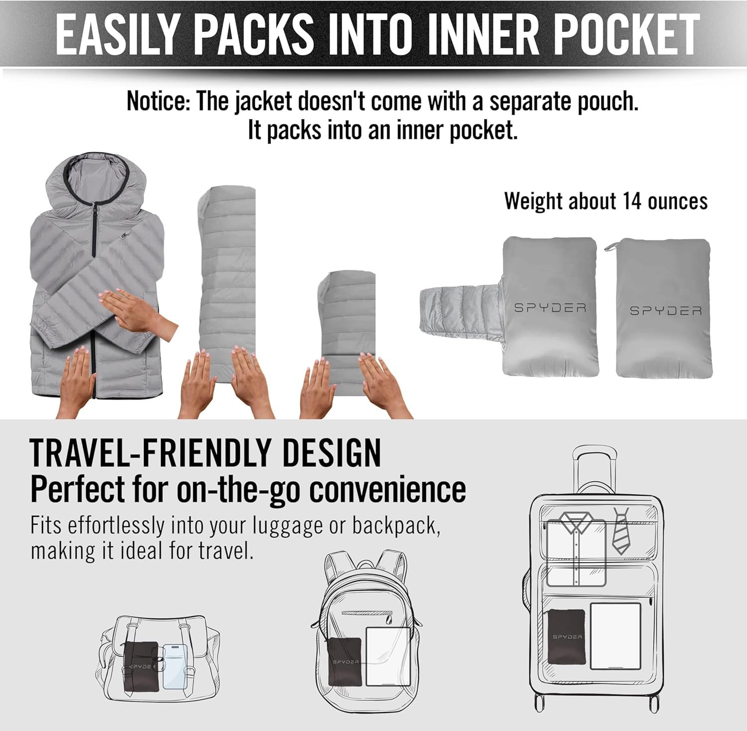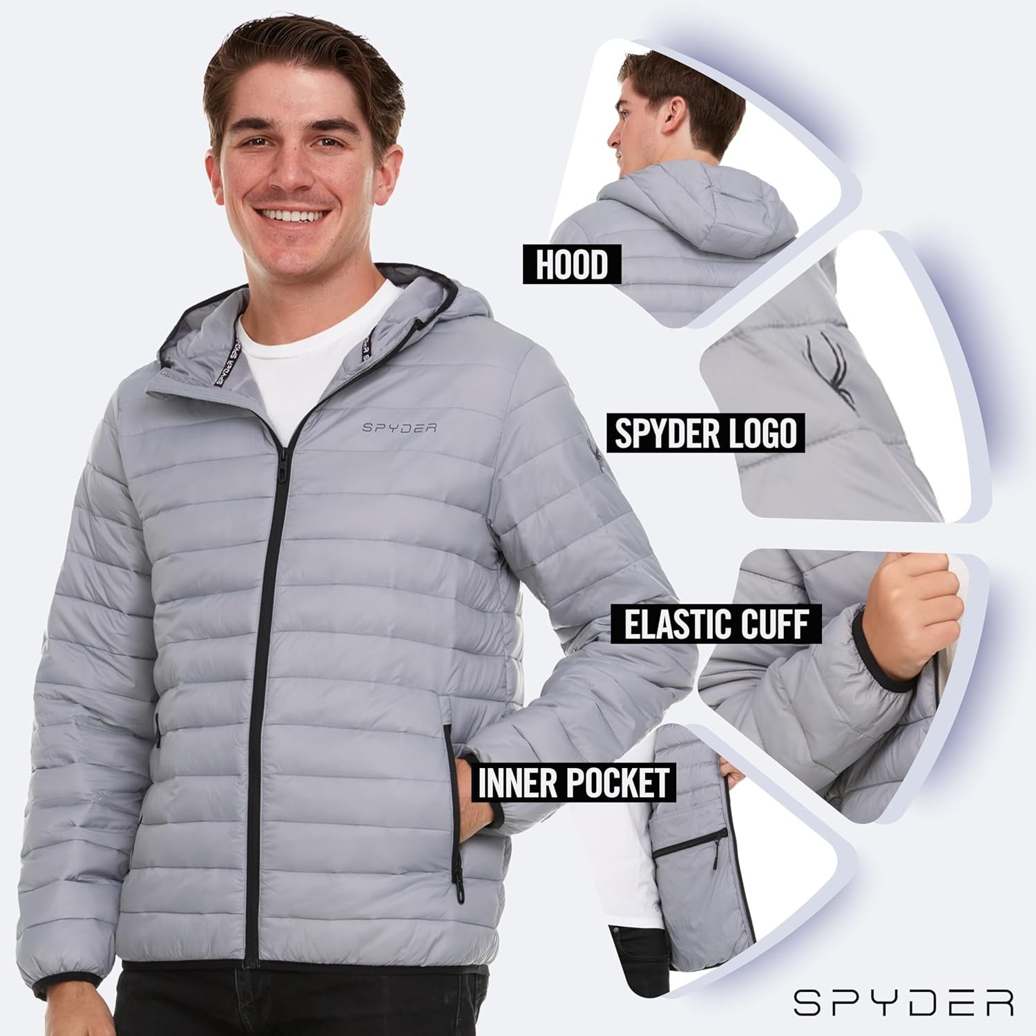 Spyder Packable Puffer Jacket Men with Hood, Lightweight Winter Jackets for Men