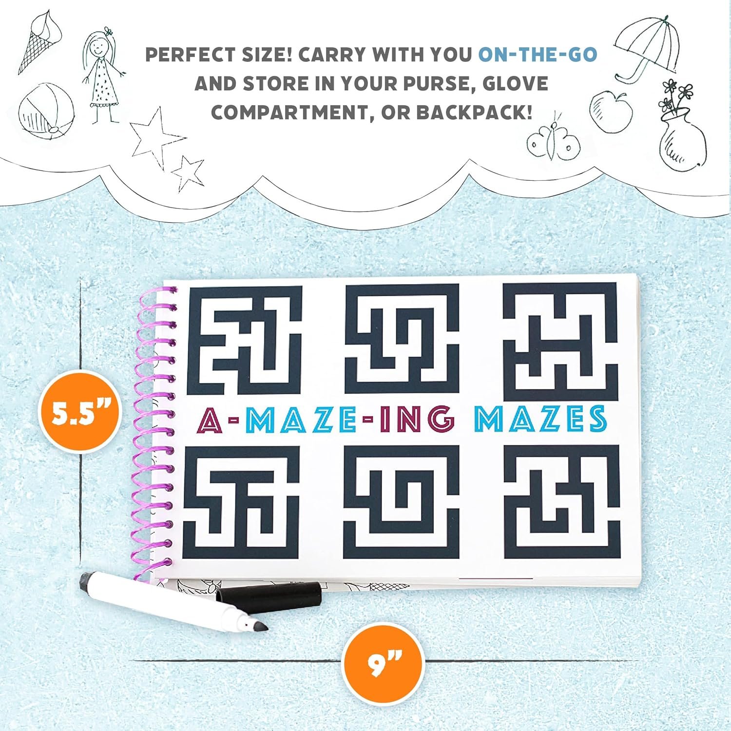 Travel-Friendly: This dry erase activity book is 5.5 inches wide and 9 inches tall with a binding that’s approximately 0.5 inches thick. It’s extremely versatile and can fit in your purse, glove compartment, under seats, and in a child’s hands