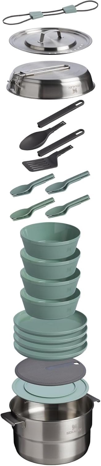 Stanley Wildfare Core 26-Piece Stainless Steel Cookset | 4 qt Pot and Lid with Fold & Lock Handle | Camping Essentials for Your Camp Kitchen