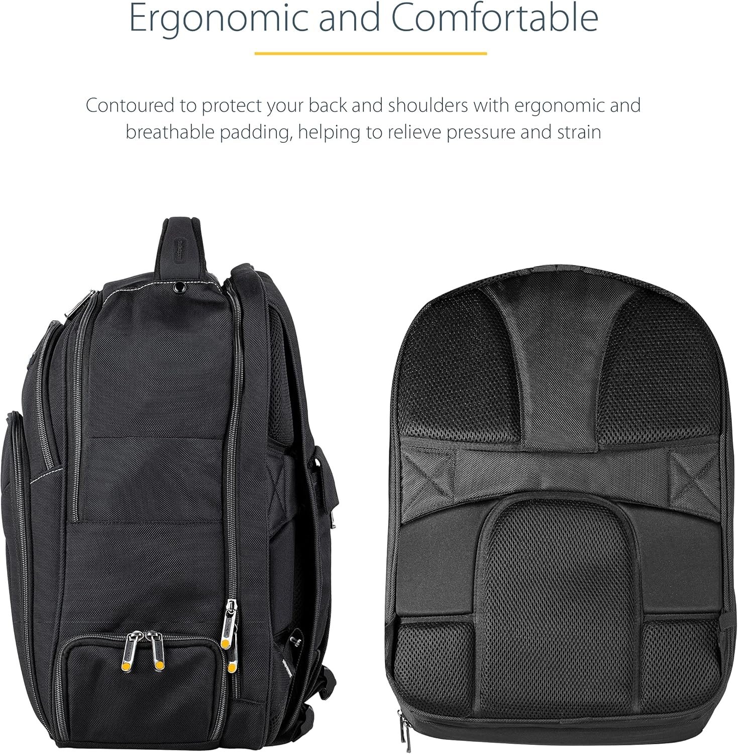 StarTech.com Unisex Backpack Ergonomic Computer Bag with Removable Accessory Case-Laptop/Tablet Pockets-Nylon, Black, 17.3″ Professional IT Tech Backpack for Work/Travel/Commute (NTBKBAG173)
