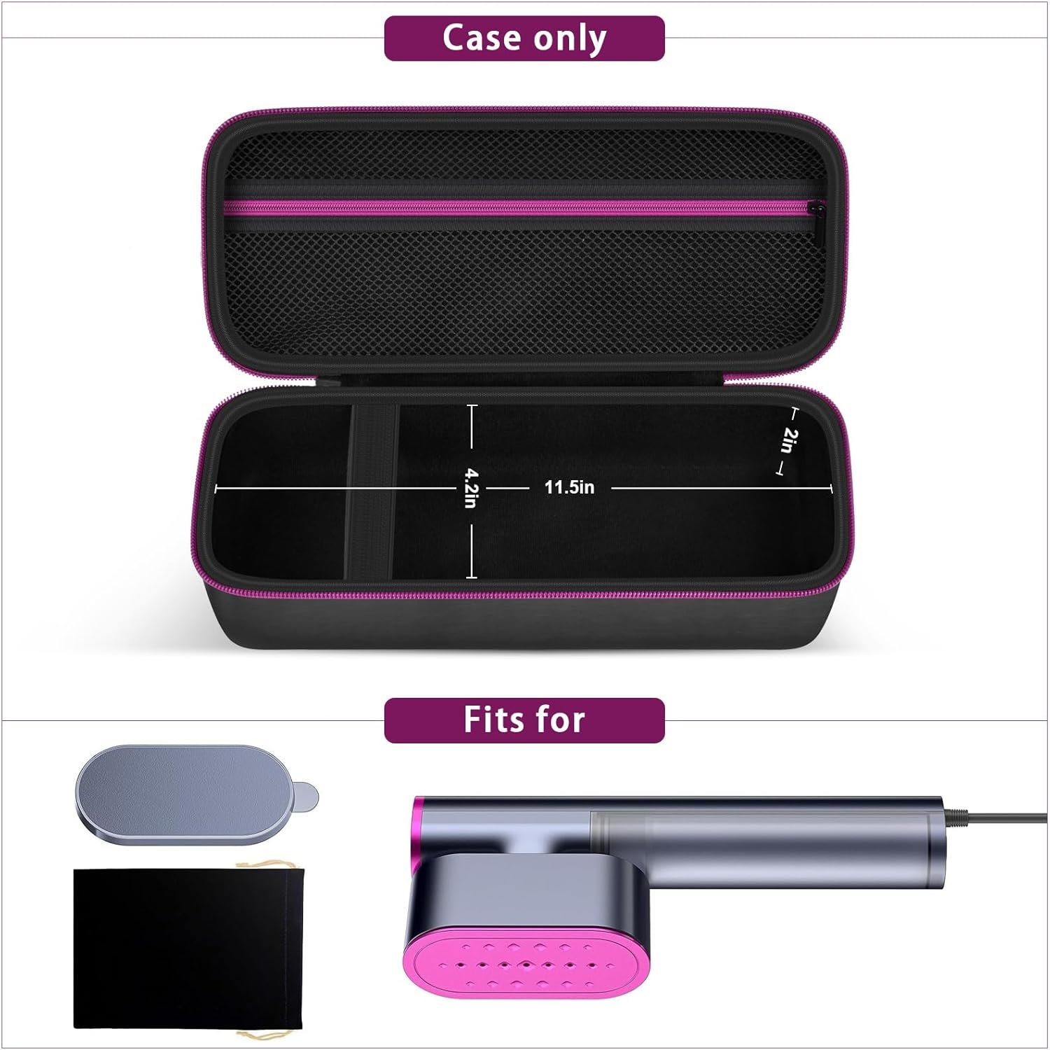 Steamer Case Compatible with Jack & Rose/for FEPPO/for Nesugar/for Kssvzz Portable Steamers, Handheld Iron Carrying Storage Bag Organizer with Mesh Pocket for Accessories-Box Only