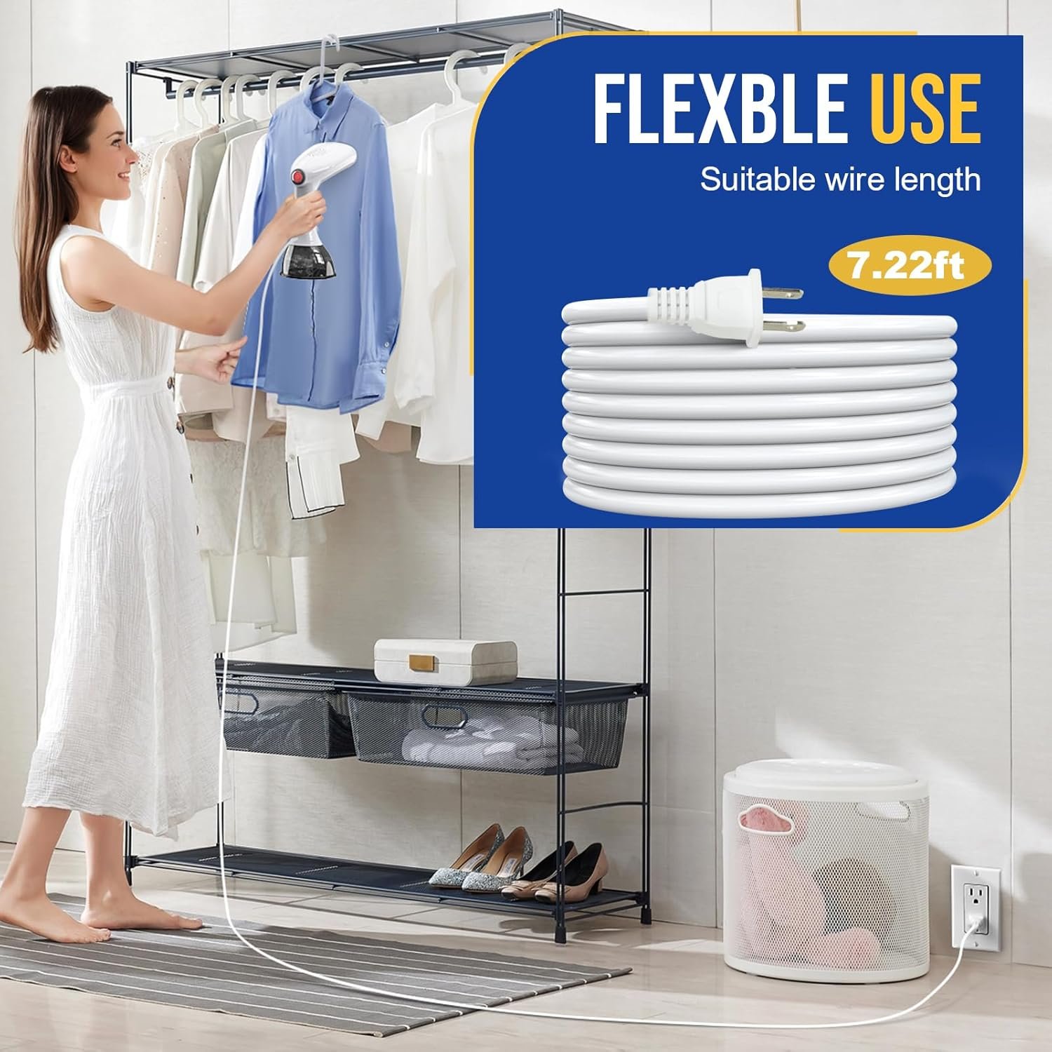 【Extra-long power cable】86in/2.2m extra-long cover a wide range, You can use it anywhere, without limitation of space. Every single steamer cable is rigorously tested for maximum safety and durability.