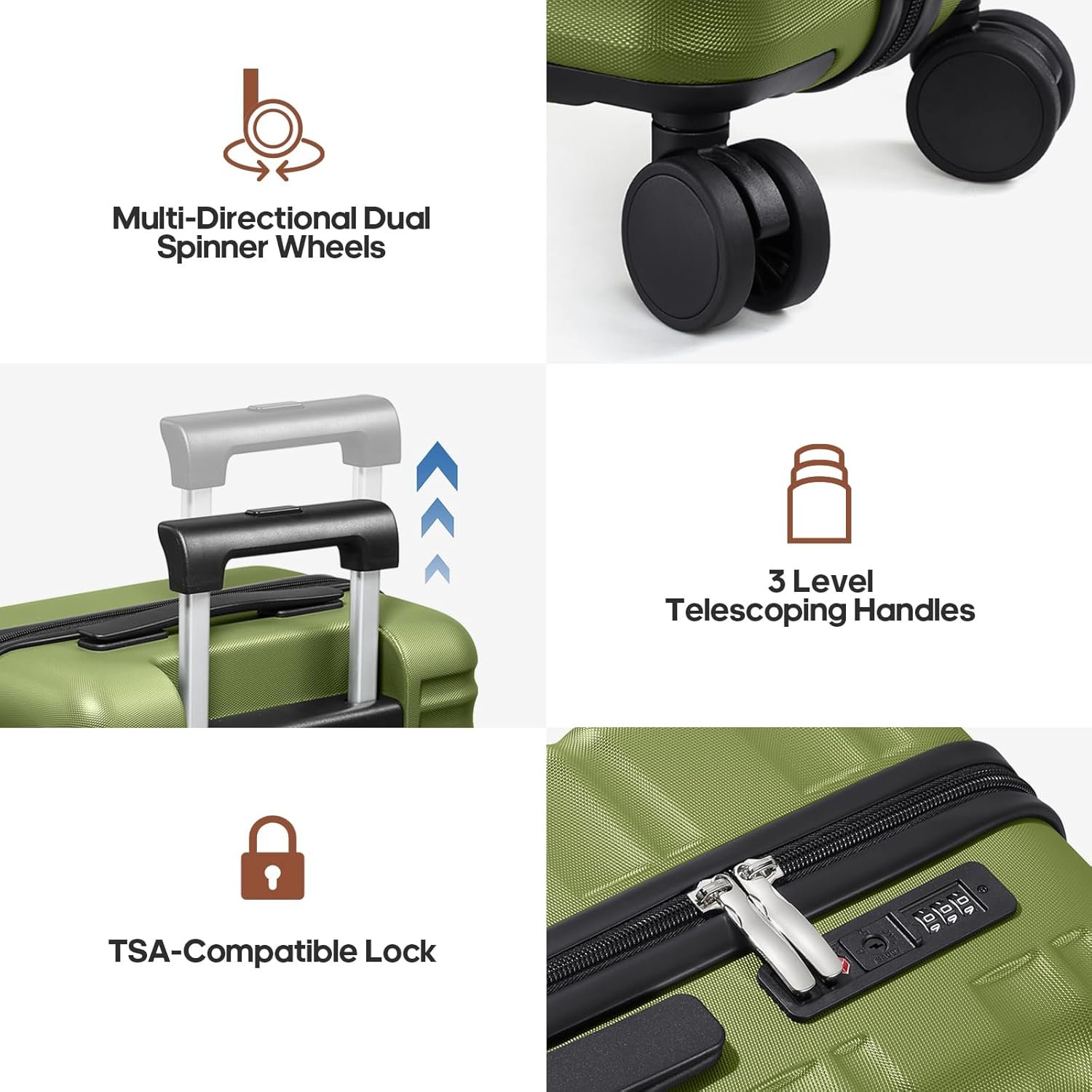 Suitcase Set 3 Piece, 20 IN Carry On Luggage with PC Hard Shell, TSA Lock Spinner Wheels Extension Handle Suitcase Set, Luggage Set With Fully Lined Interior